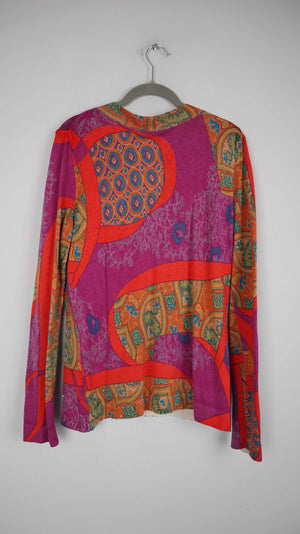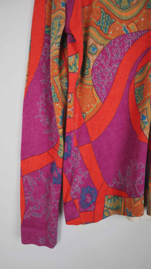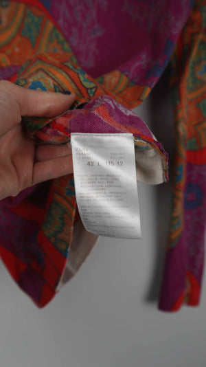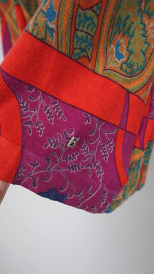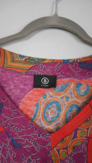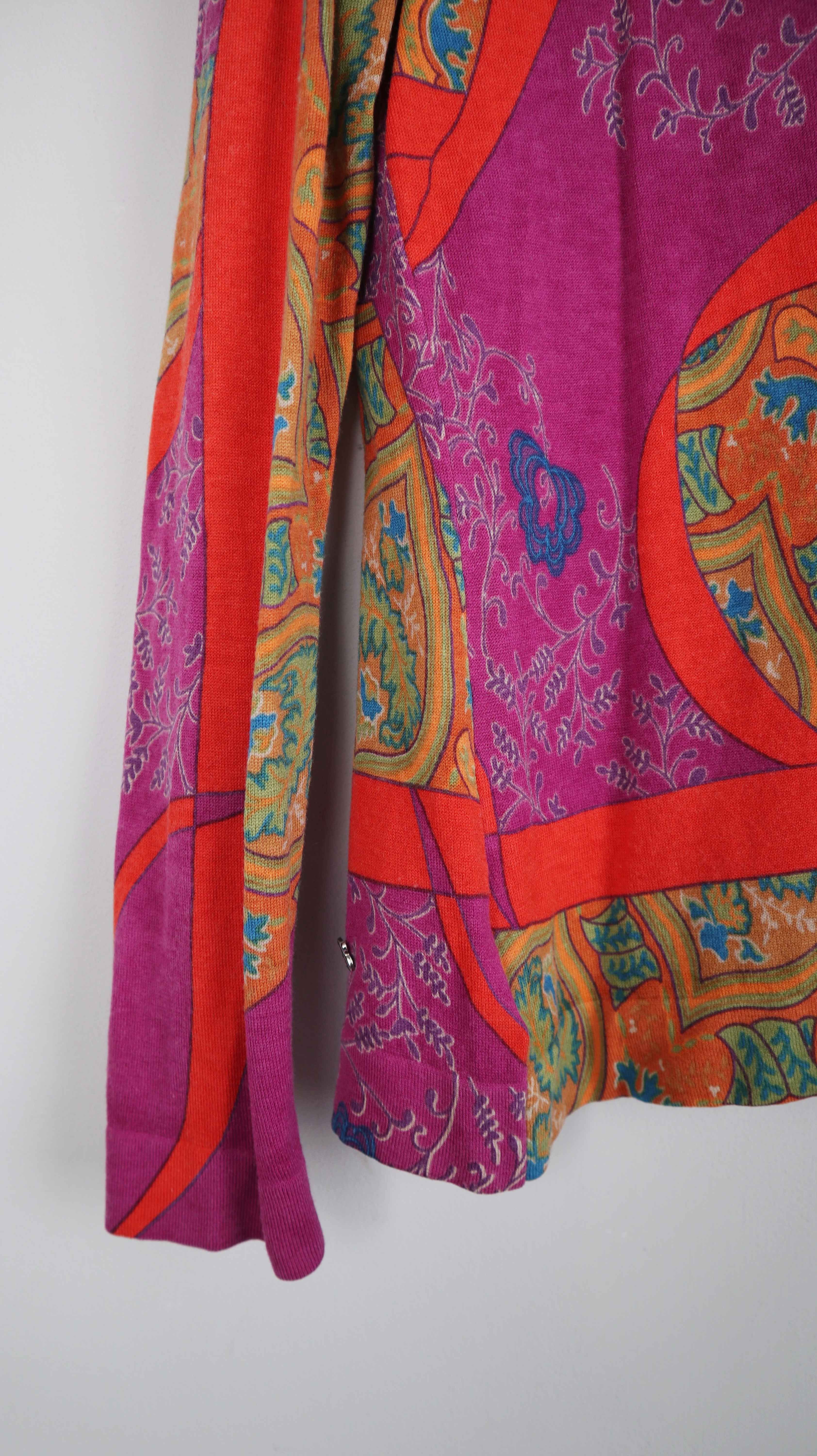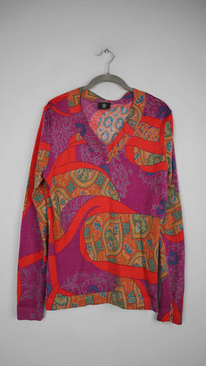 Bogner Pullover rot Paisley 40 L Seide Wolle Kaschmir V-Ausschnitt