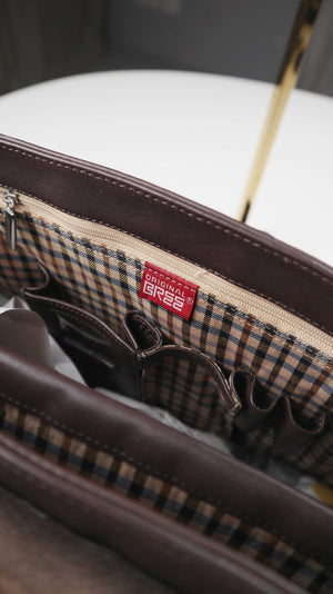 Braune Schultertasche von Bree mit vielen Fächern. Sehr guter Zustand, Echtleder, innen kariert. Plus Versand