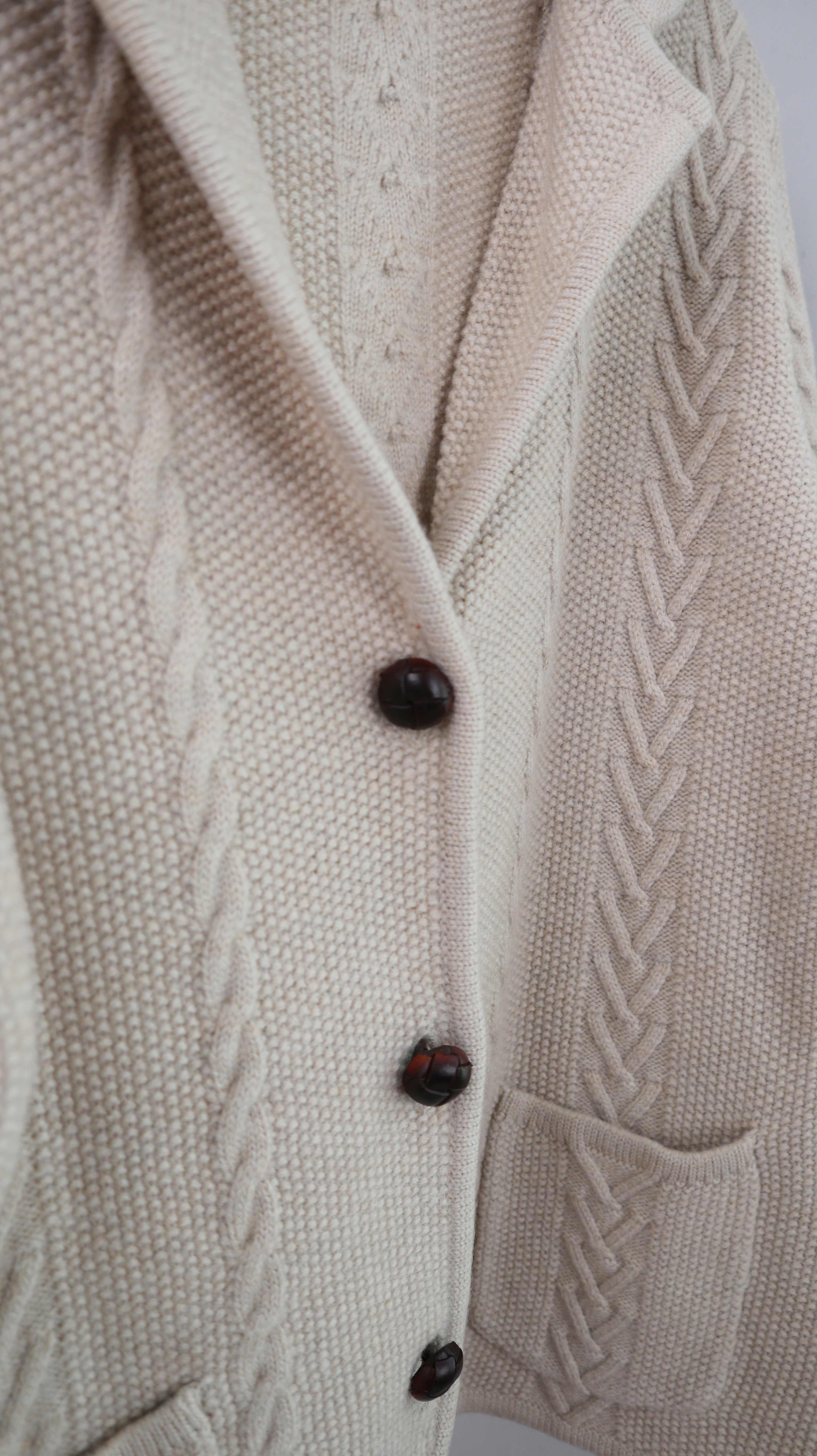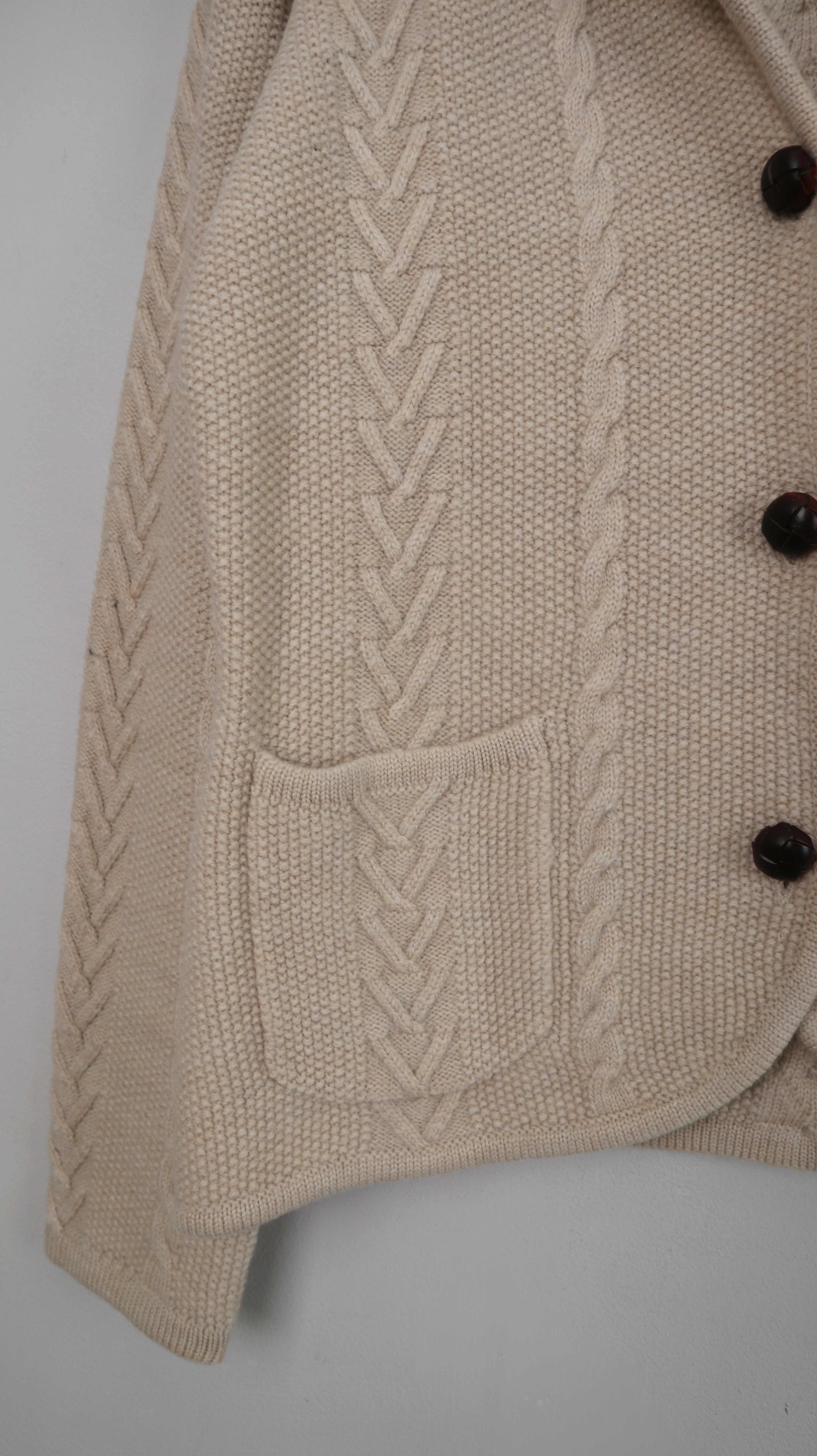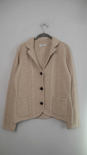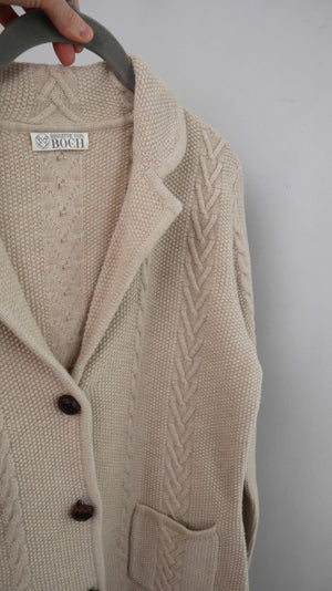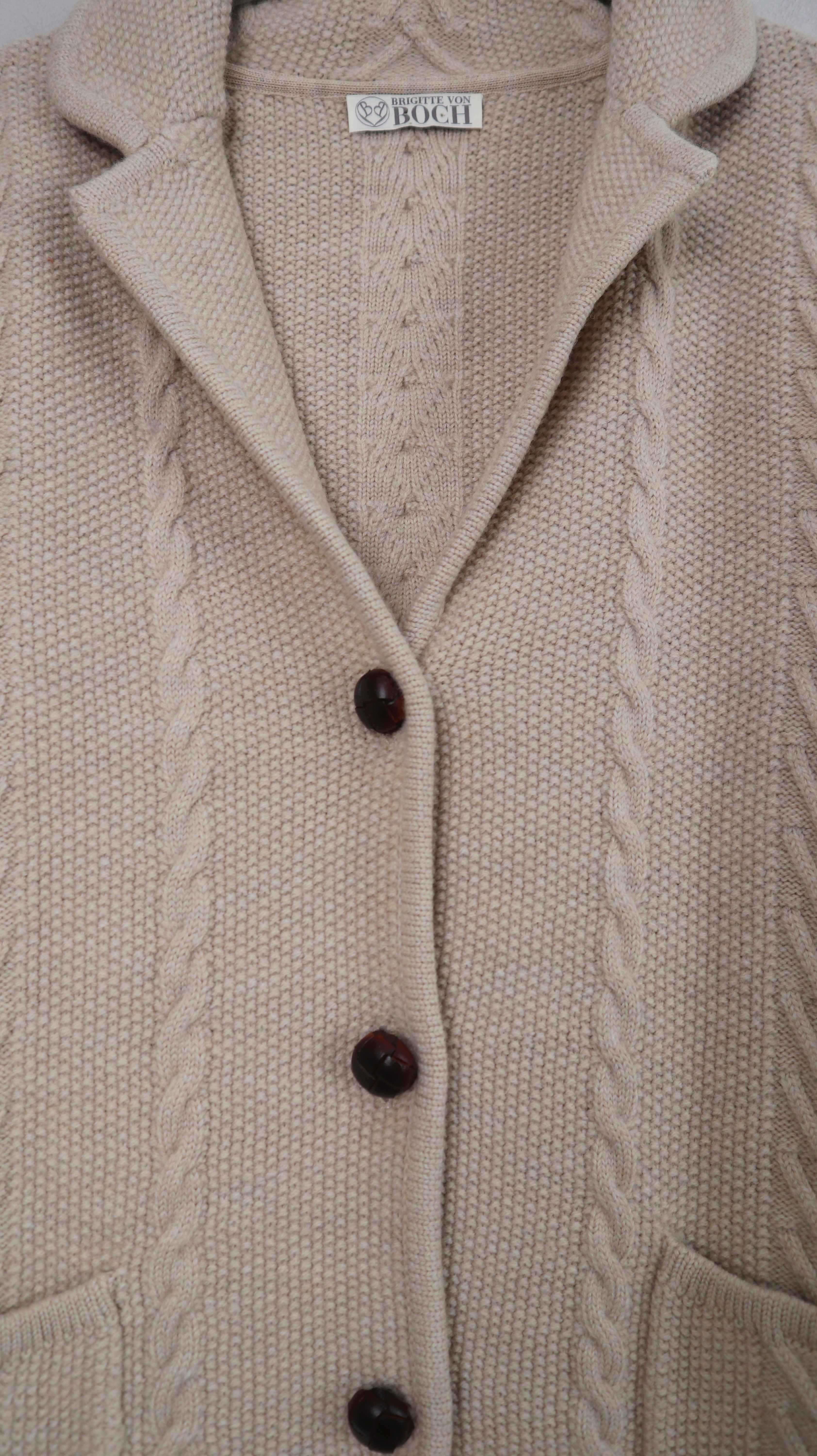Brigitte von Boch Strickjacke Creme Beige Zopfmuster 40 L Wolle Wollstrickjacke