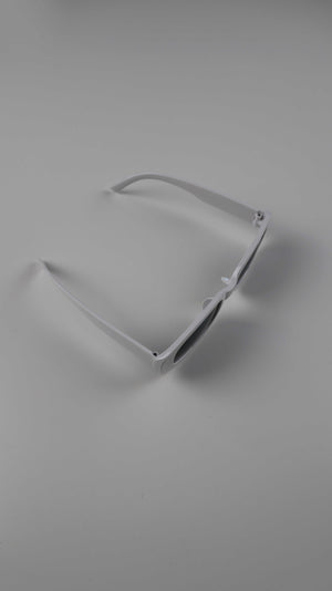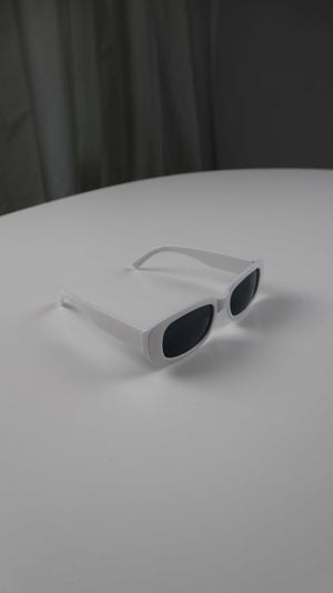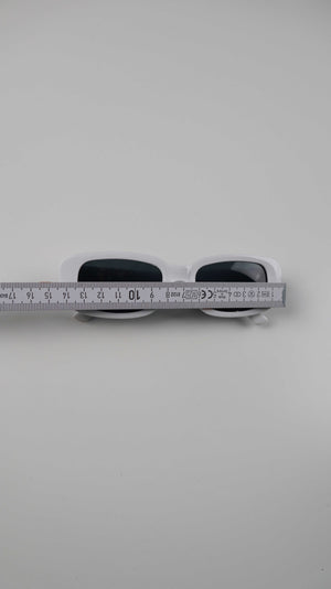 Weiße längliche Sonnenbrille aus Kunststoff. Plus Versand