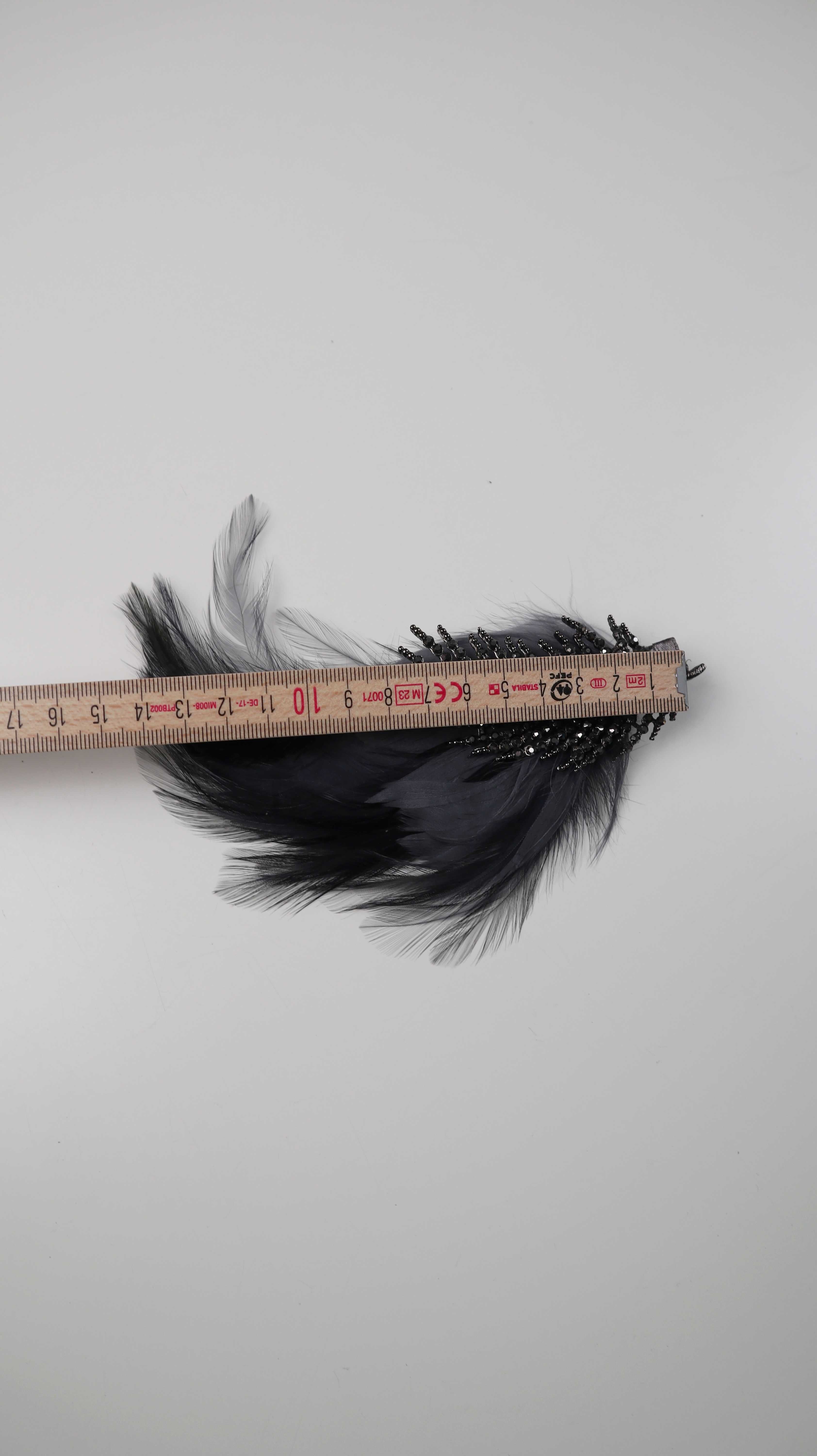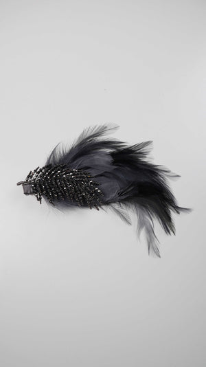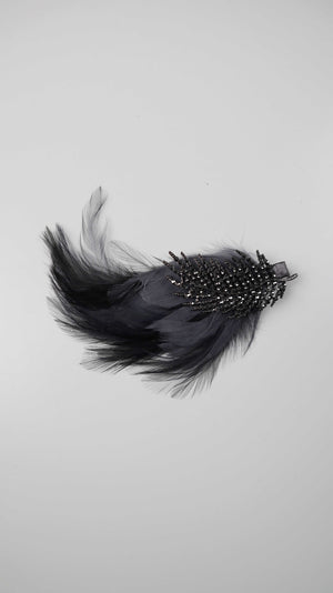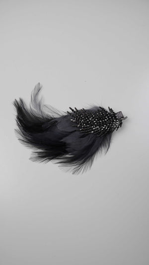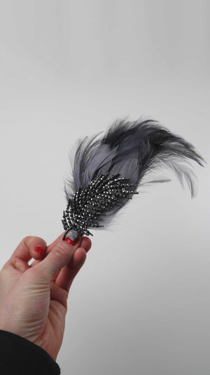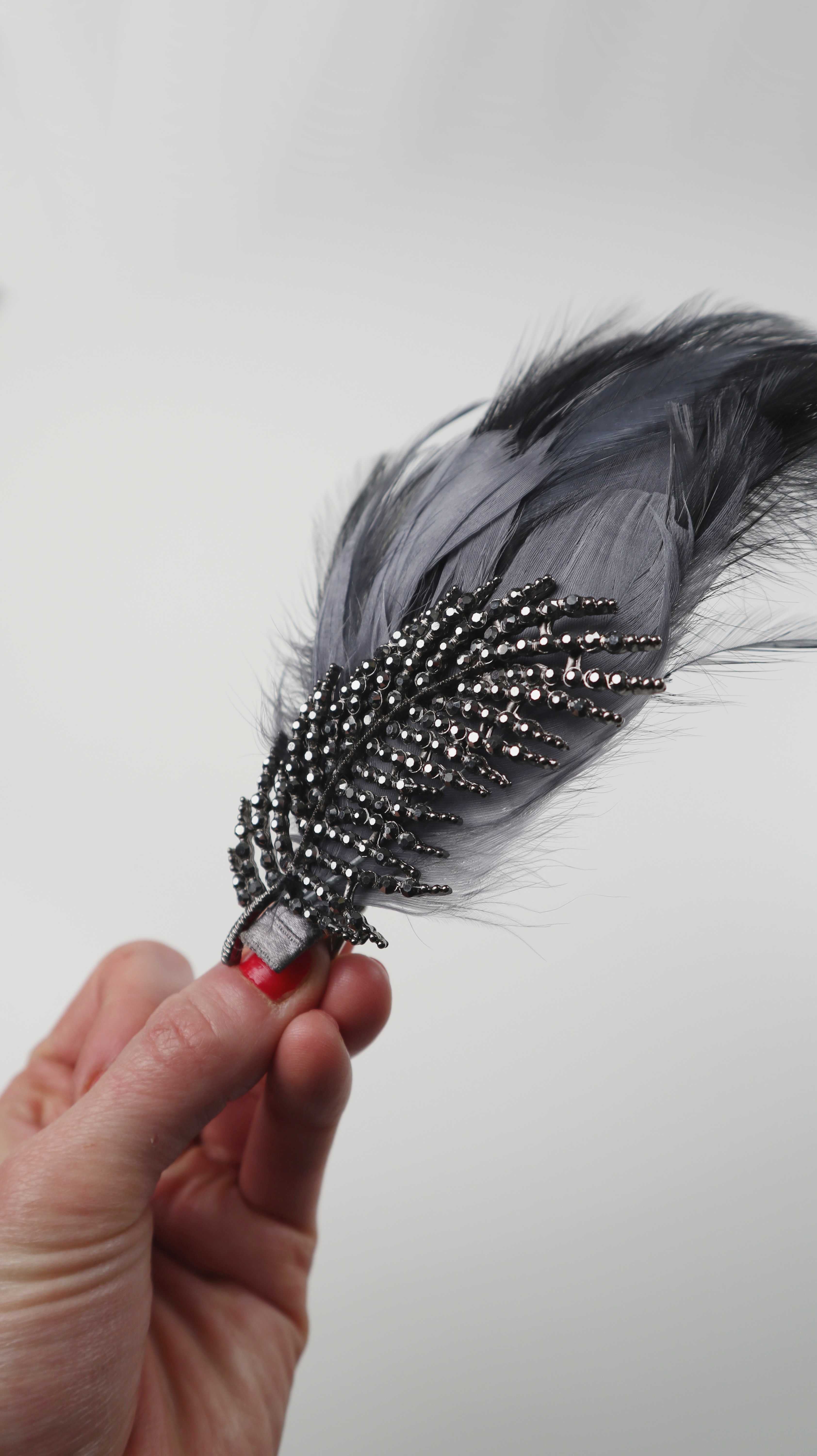 Brosche Haarschmuck Federbrosche Federspange Silber schwarz grau