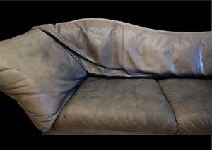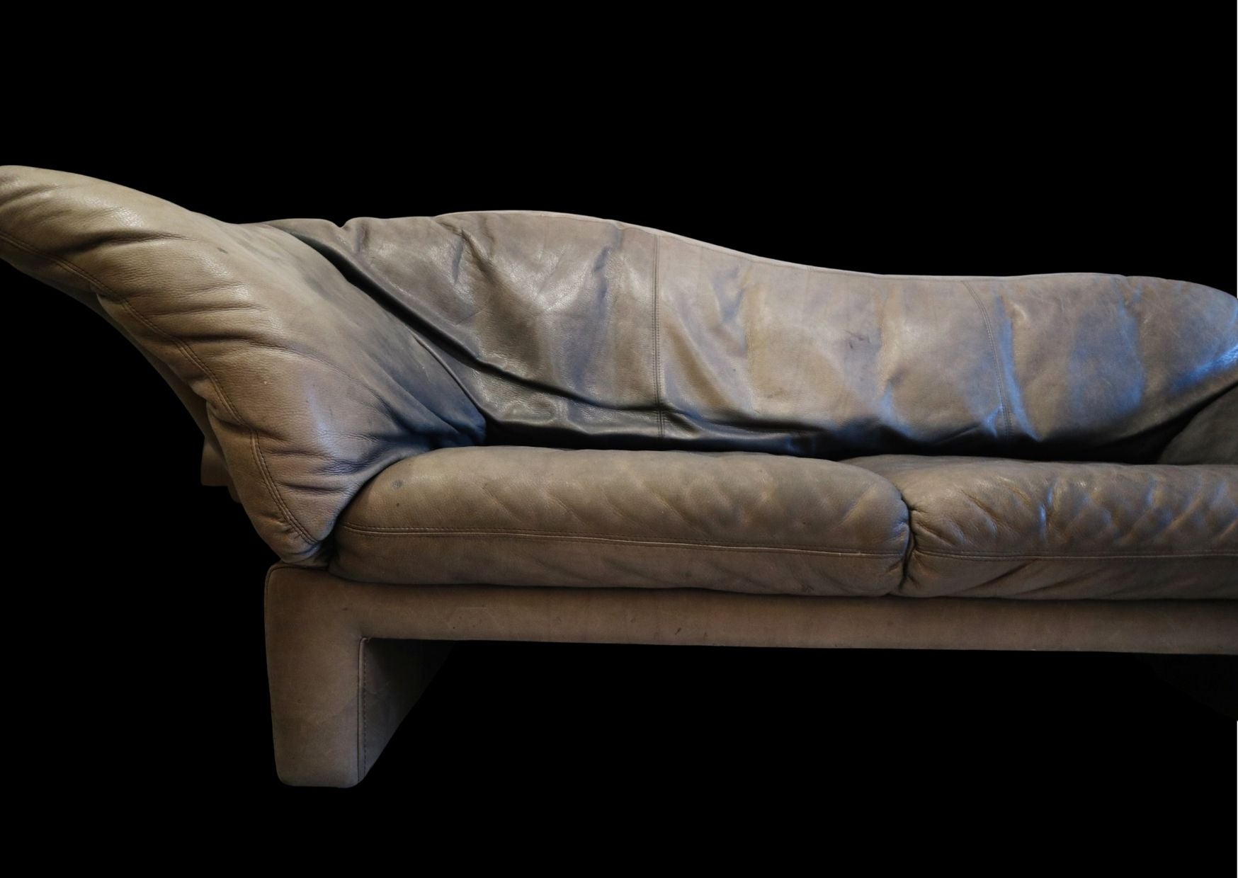 Sehr schönes Ledersofa in einer geschwungenen Form von Brühl & Sippold aus Echtleder. Es ist aus den 90ern und hat Patina, die dem Sofa einen Retro Look gibt. Man kann die Polster über Reißverschlüsse entfernen und dann leichter transportieren. Es ist gereinigt und gepflegt. 200 cm Länge, 40 cm Höhe der Sitzfläche, 80 cm Höhe Linke Welle hinten, 115 cm Breite der Sitzfläche, 67 cm Höhe linkes Armelement, 50 cm Höhe rechtes Armelement. Versand oder Abholung möglich