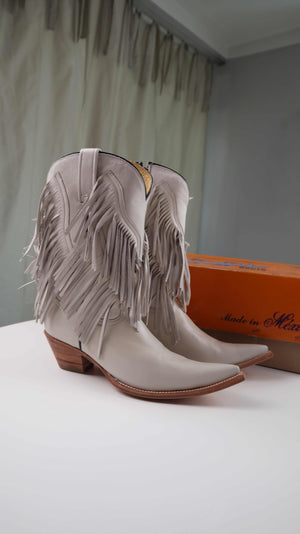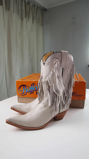 Buffalo Cowboystiefel Stiefel Neu Creme Spitz Lederstiefel 40 Fransen Fransenstiefel