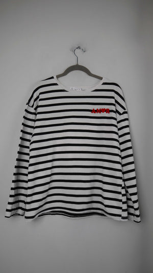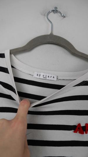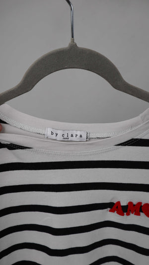 by clara Paris Shirt Longsleeve schwarz weiß gestreift 38 M Streifenshirt