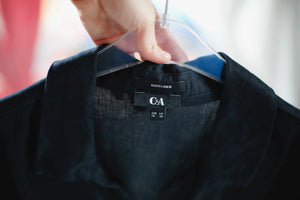 Schwarzes Leinenhemd von C&A in 48. 72 cm Achselweite und 68 cm Länge. Plus Versand