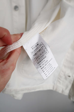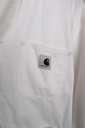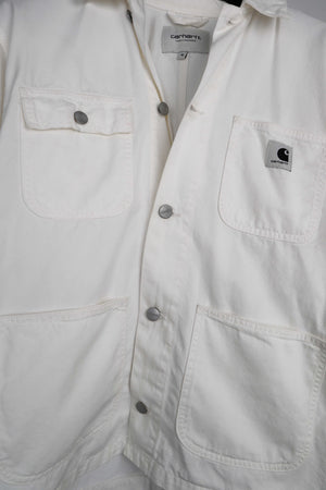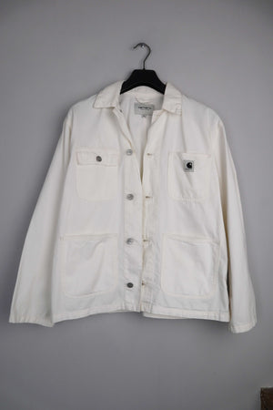 Weiße Hemdjacke von Carhartt in M. Es ist das Modell Michigan Coat. Sie kann unisex getragen werden. 56 cm Achselweite und 64 cm Länge. Plus Versand