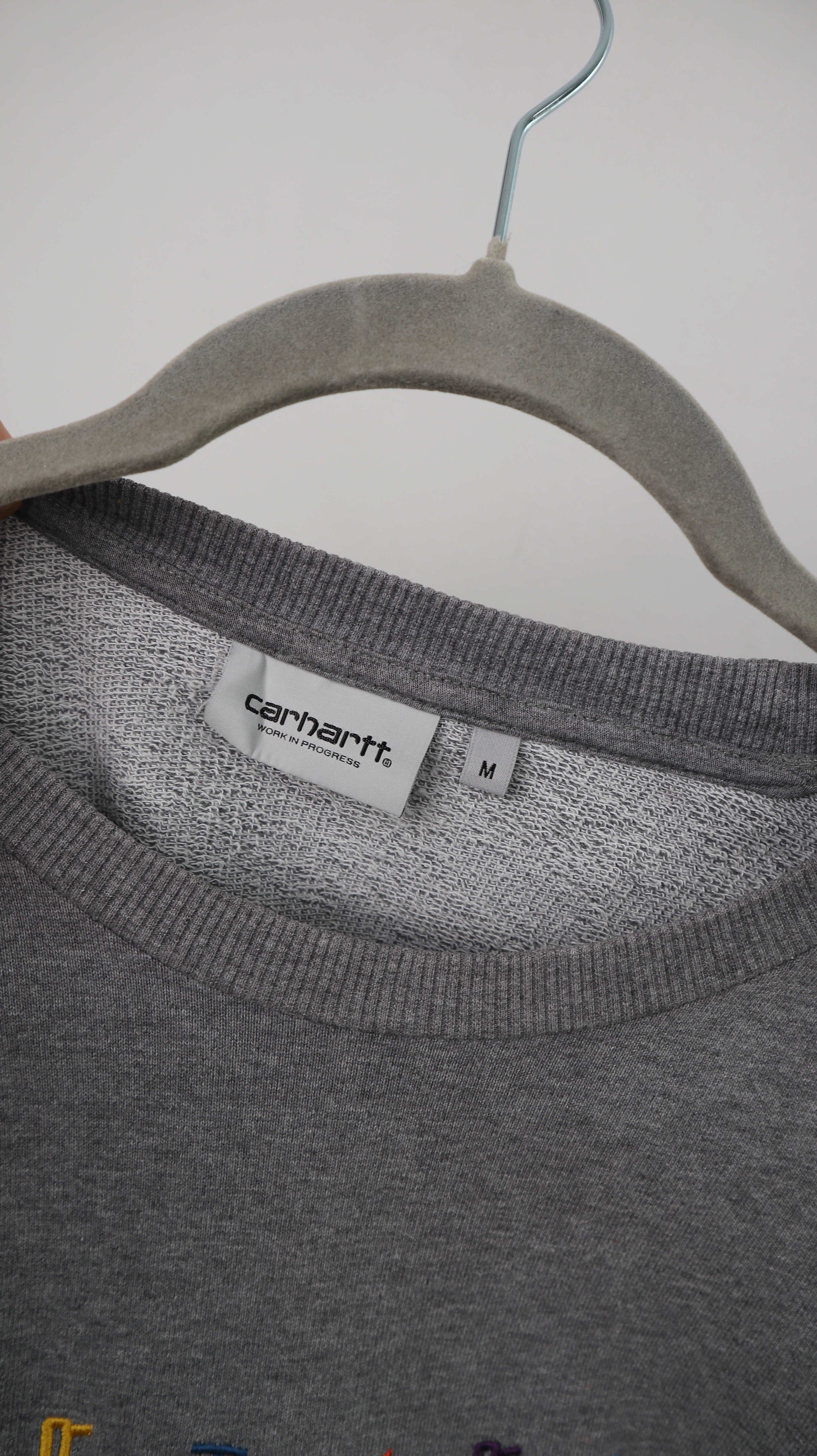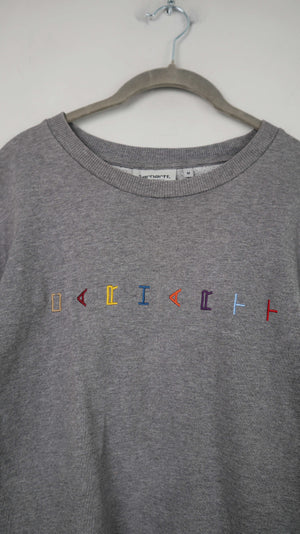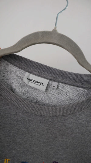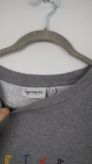 Carhartt Pullover Grau Hoodie Sweater Horizontal M Bunt bestickt