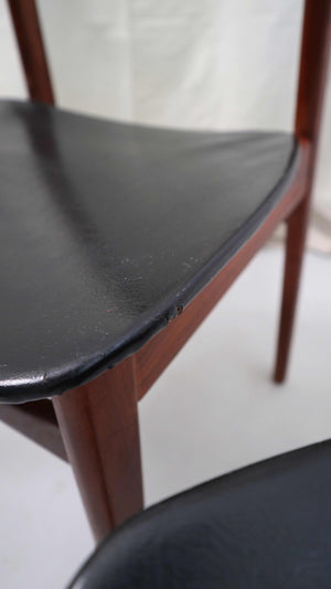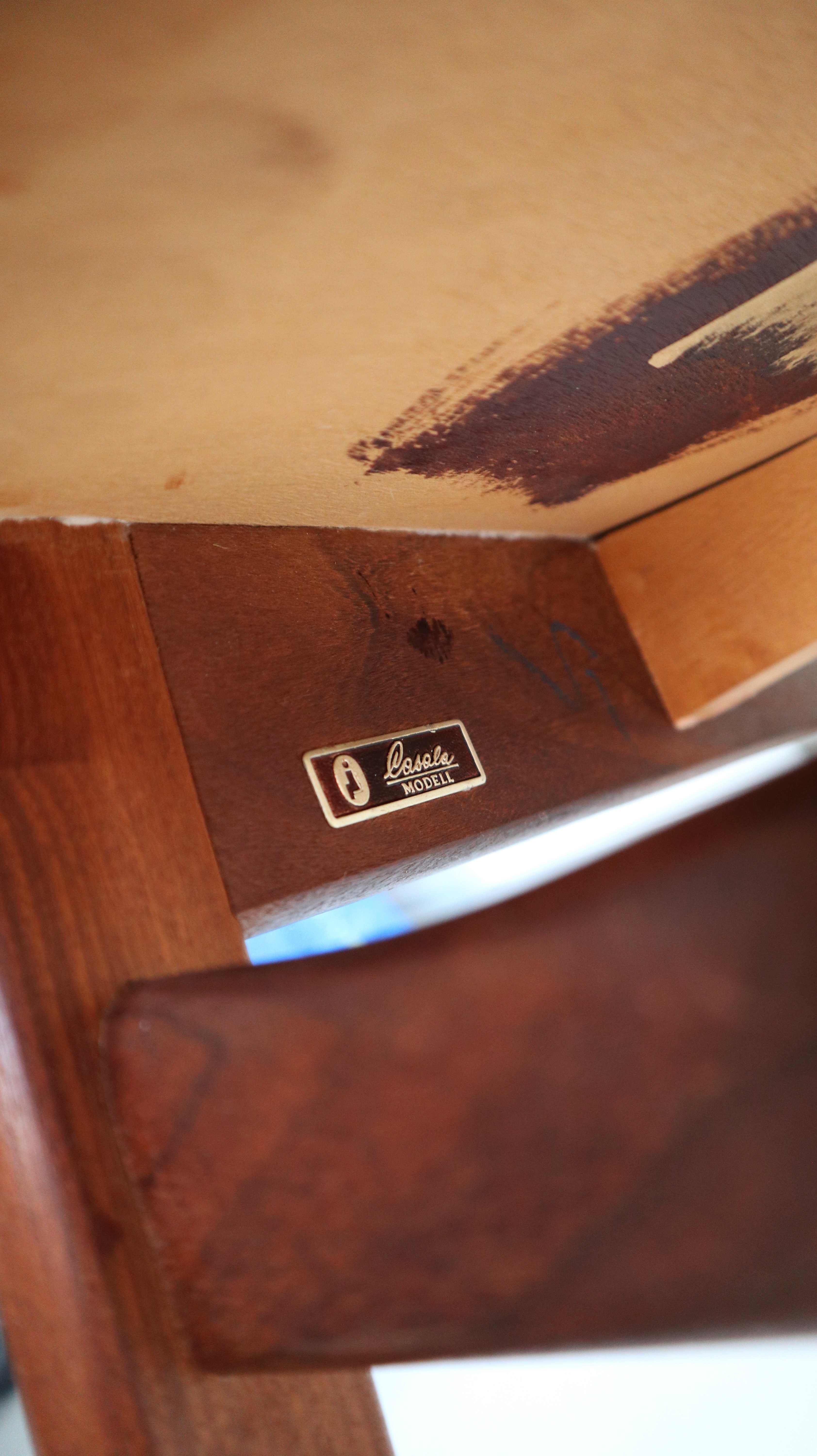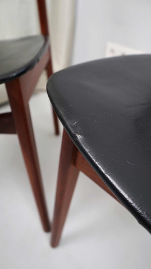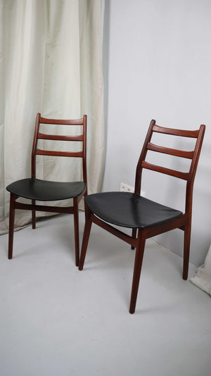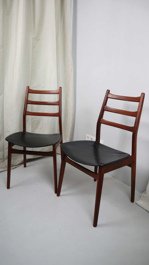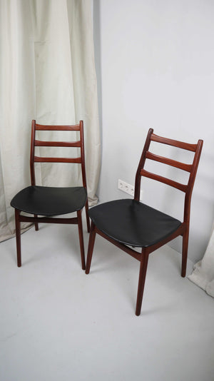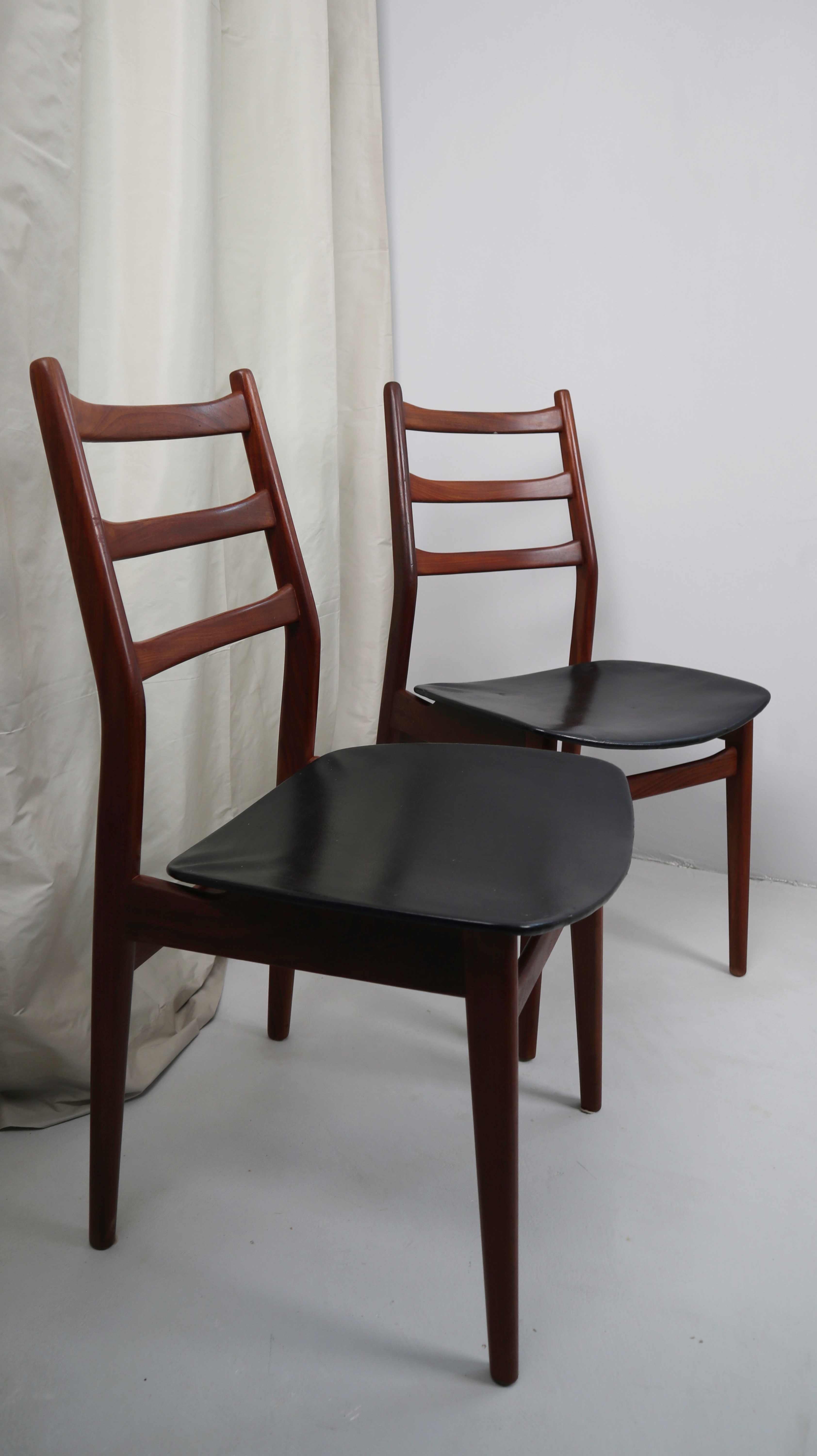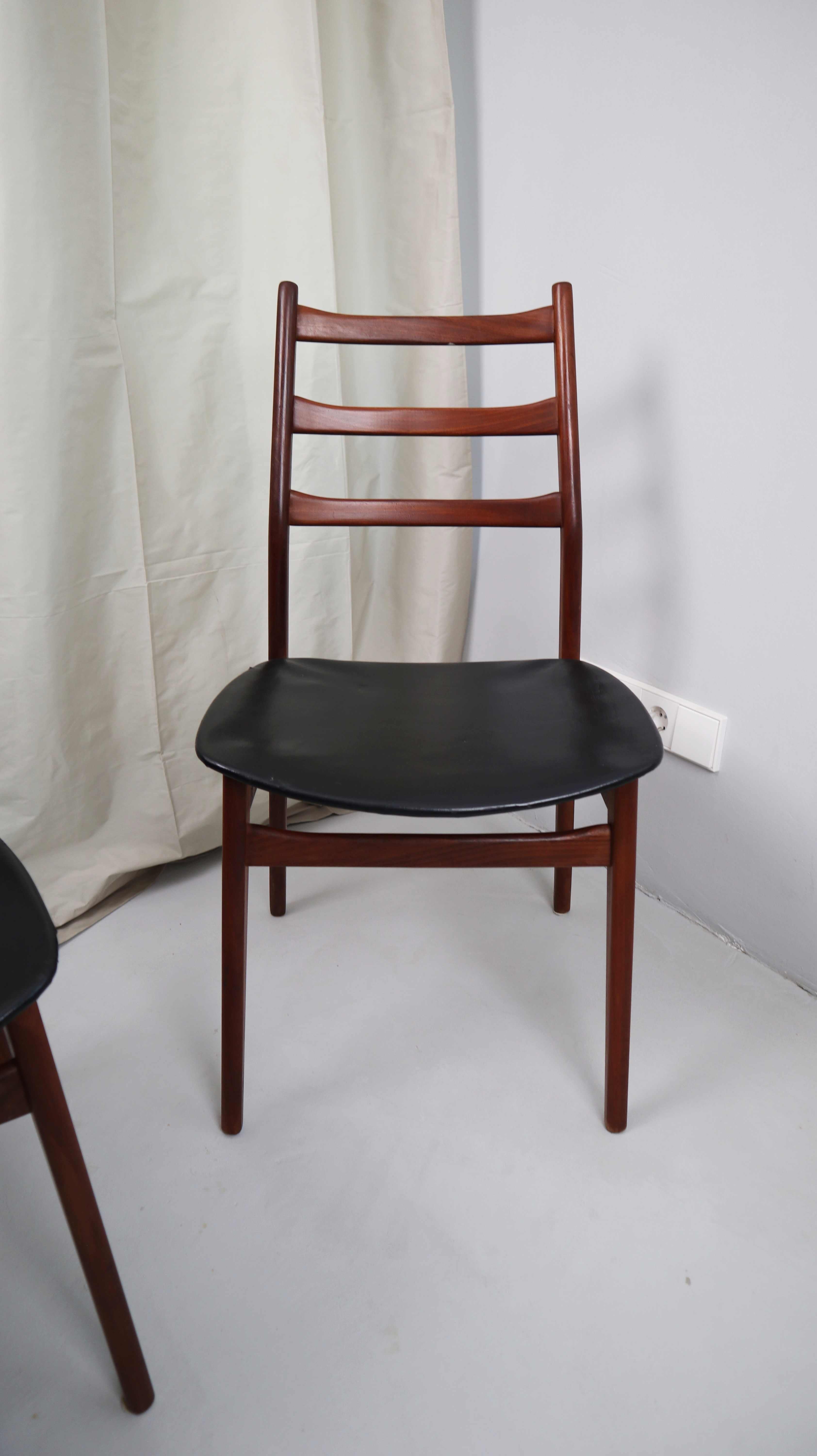 Zwei wunderbare, originale Stühle in dunkel Teak von Casala. Sie sind mit dem originalen Emblem an der Innenseite. Das Lederpolster (ohne Schaumstoff) hat an einigen kleinen Stellen Beschädigungen. Es ist dem Alter entsprechend dennoch ein super Zustand. Verkauf nur zusammen, Versand als Paket möglich. 45 cm Breite Sitzfläche, 41 cm Tiefe. 44 cm Höhe Sitzfläche. 88 cm Höhe vom Stuhl insgesamt. Preis für beide Stühle zusammen.