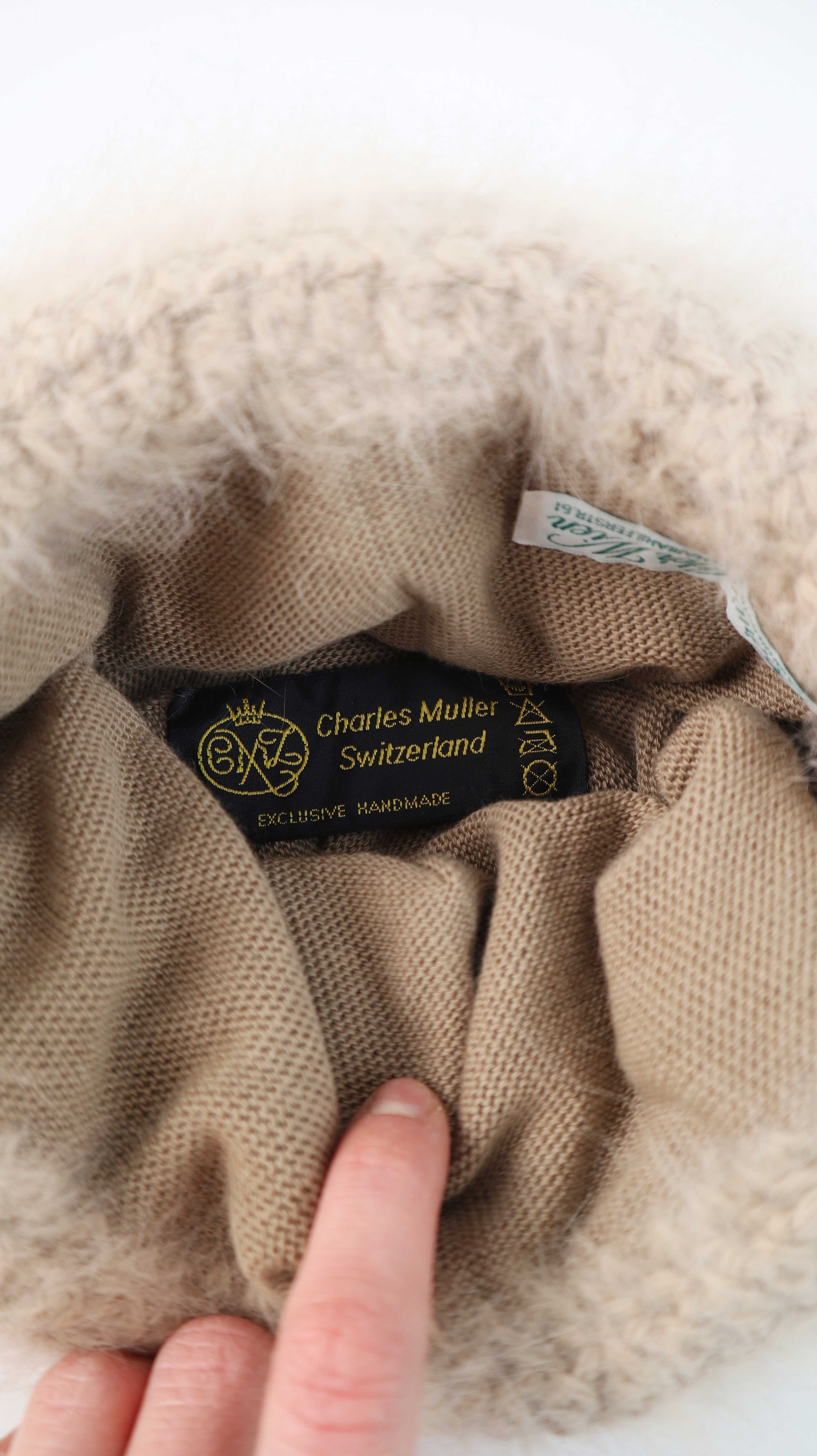 Charles Muller Switzerland Mütze Angora Creme Beige rund