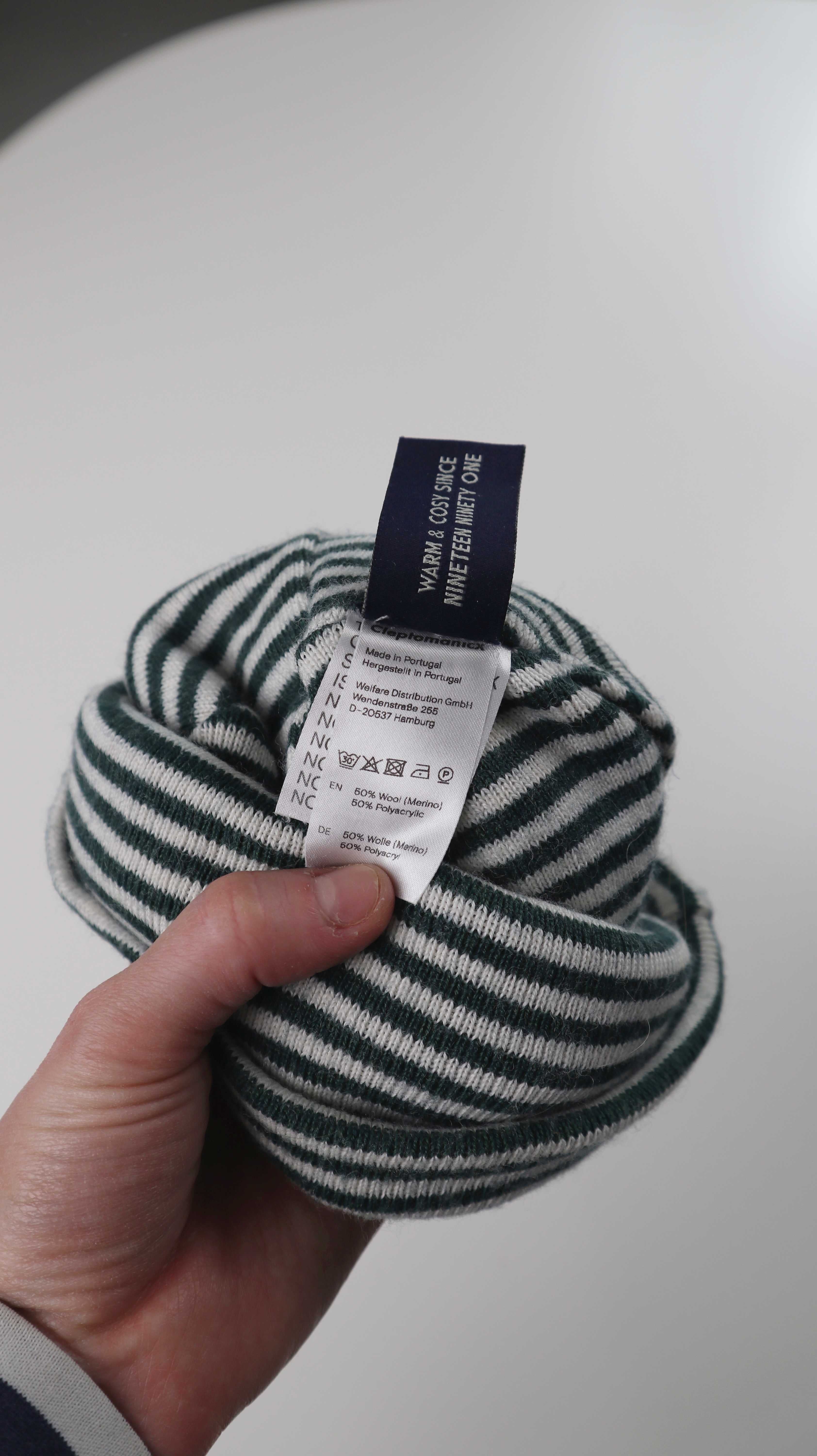 Cleptomanicx Mütze grün weiß gestreift Beanie Streifenmütze