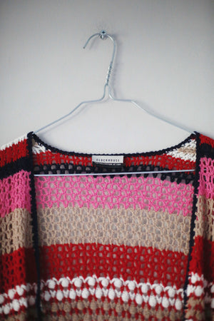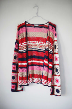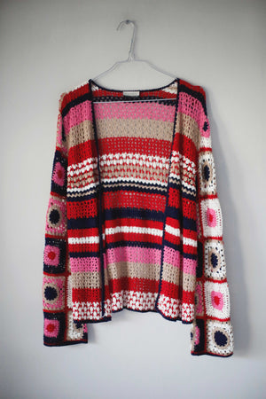 Clockhouse Strickjacke Granny Style Rot Pink gehäkelt 38 M Vintage Cardigan