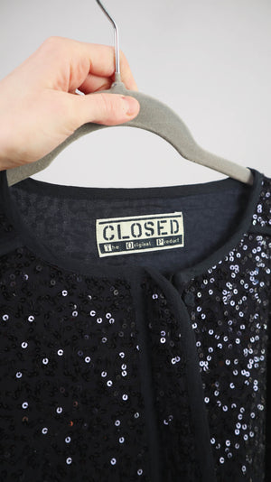 Closed Blazer schwarz Pailette Glitzer Pailettenblazer 38 M