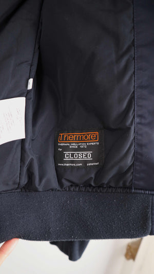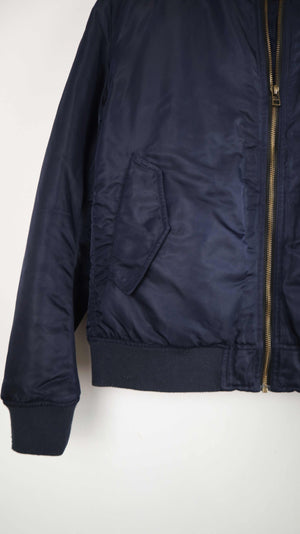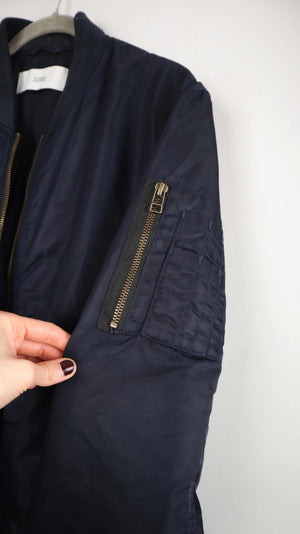 Dunkelblaue Bomberjacke von Closed in 38 M. 50 cm Achselweite und 66 cm Länge. Leichtes Peeling an den Stoffelementen. Plus Versand