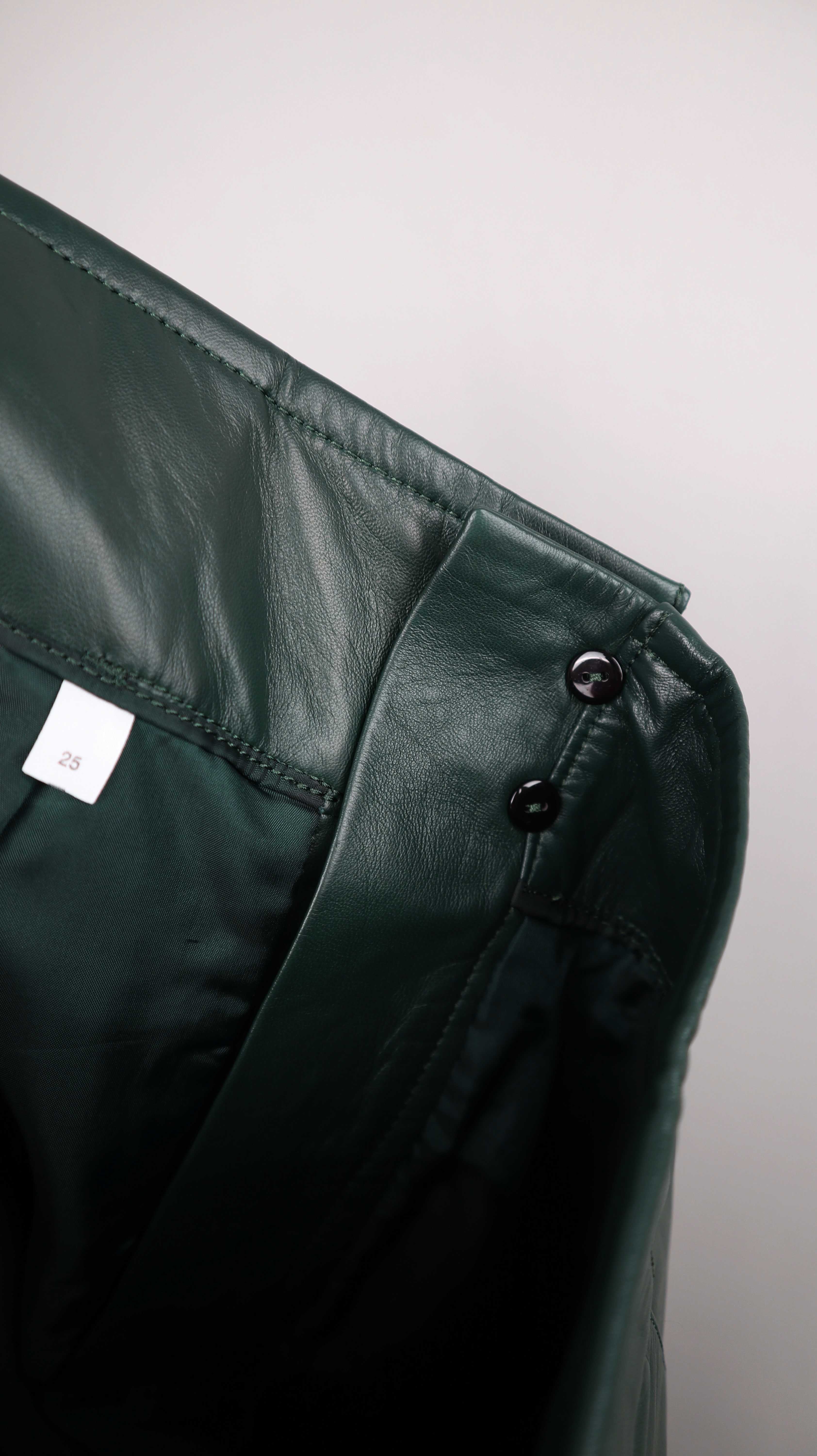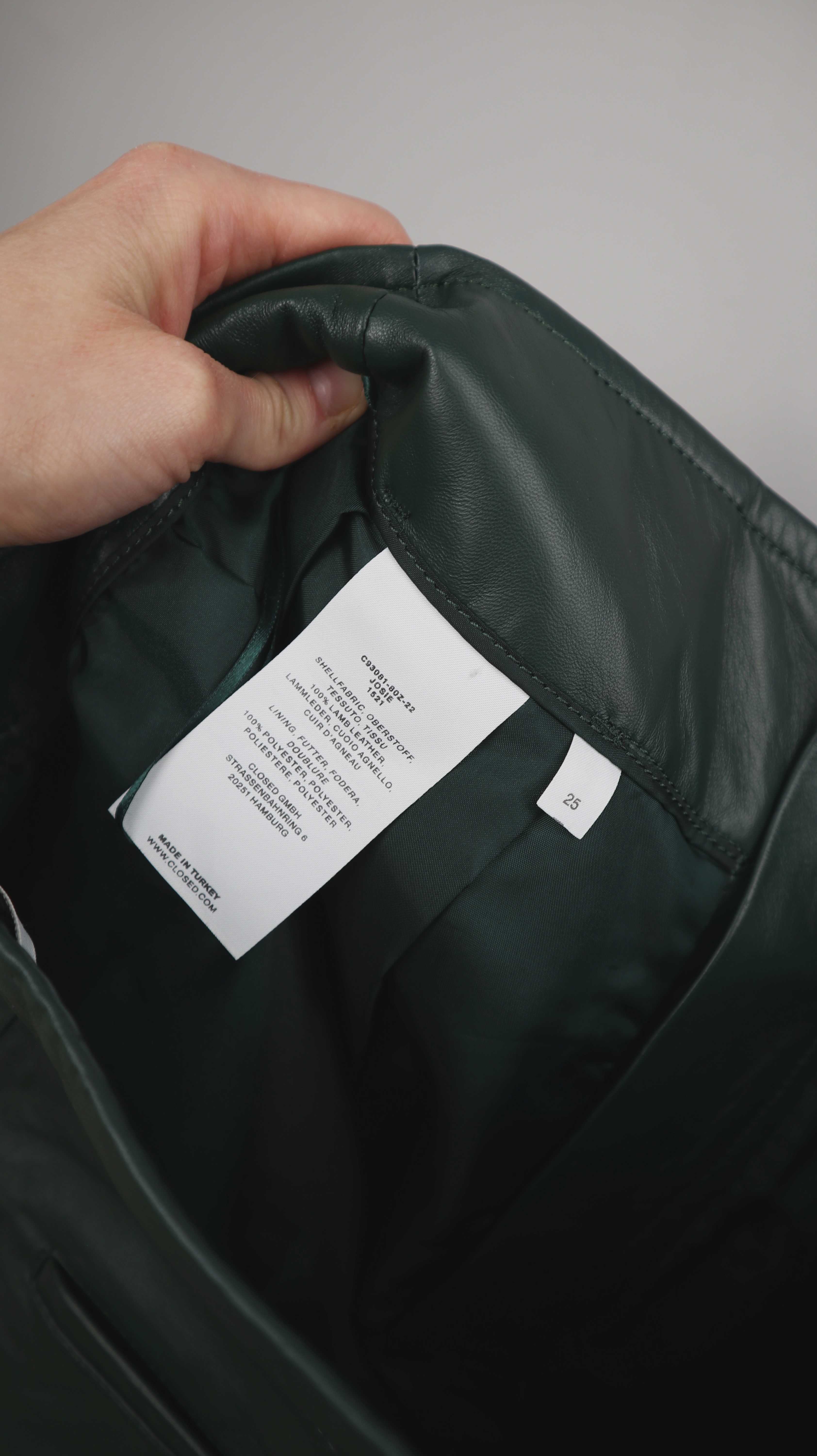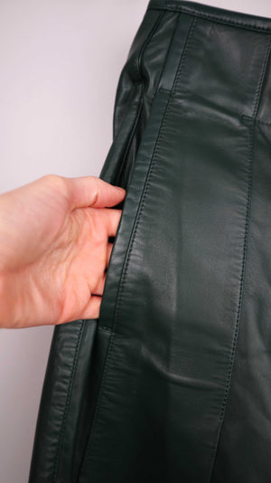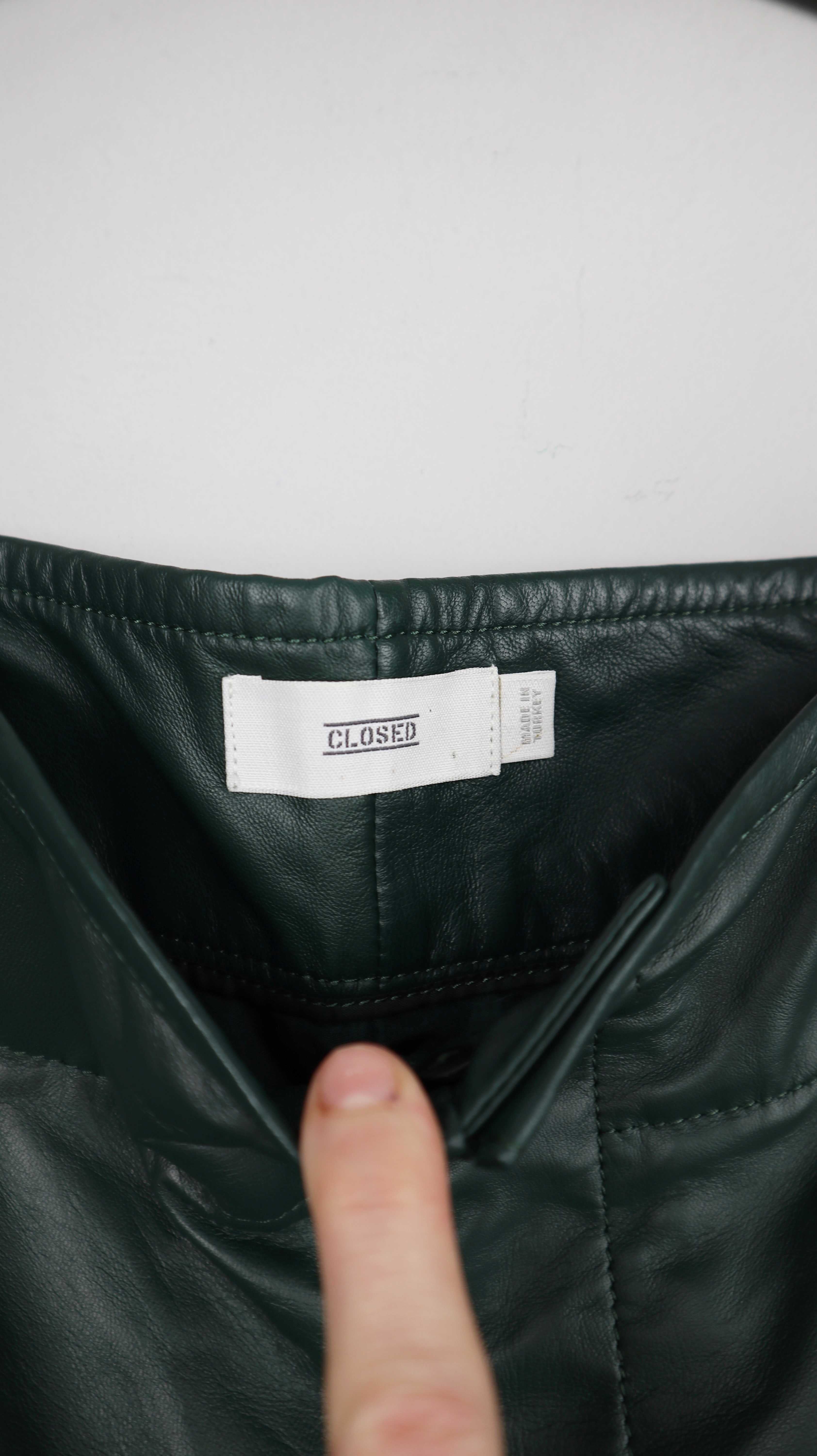 Lederhose in einem dunklen Grün von Closed. Besonders schön zu Stiefeln. 37 cm Bundweite, 31 cm Schritthöhe und 51 cm Innenbeinlänge. Absolut neuwertig. Plus Versand