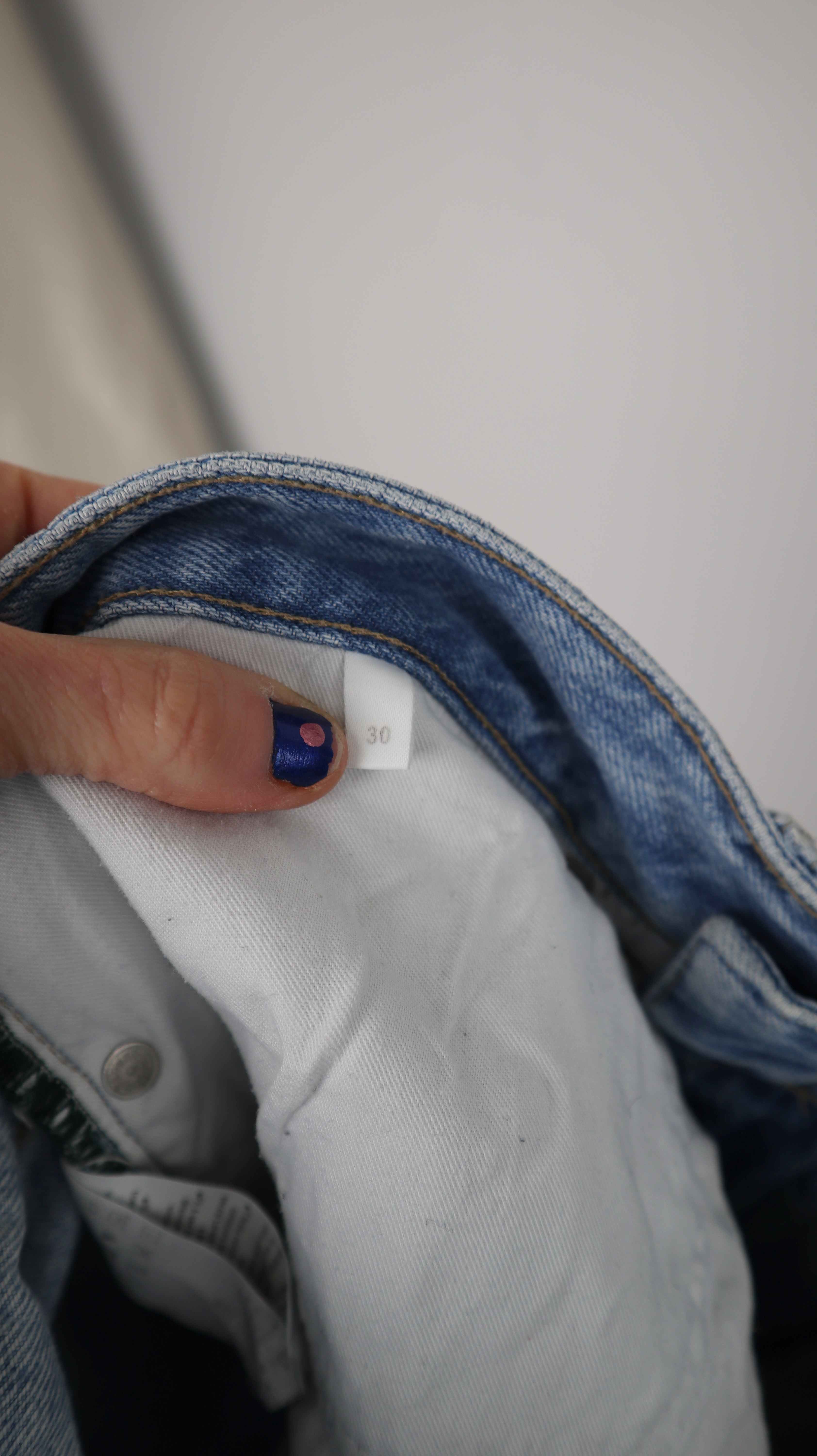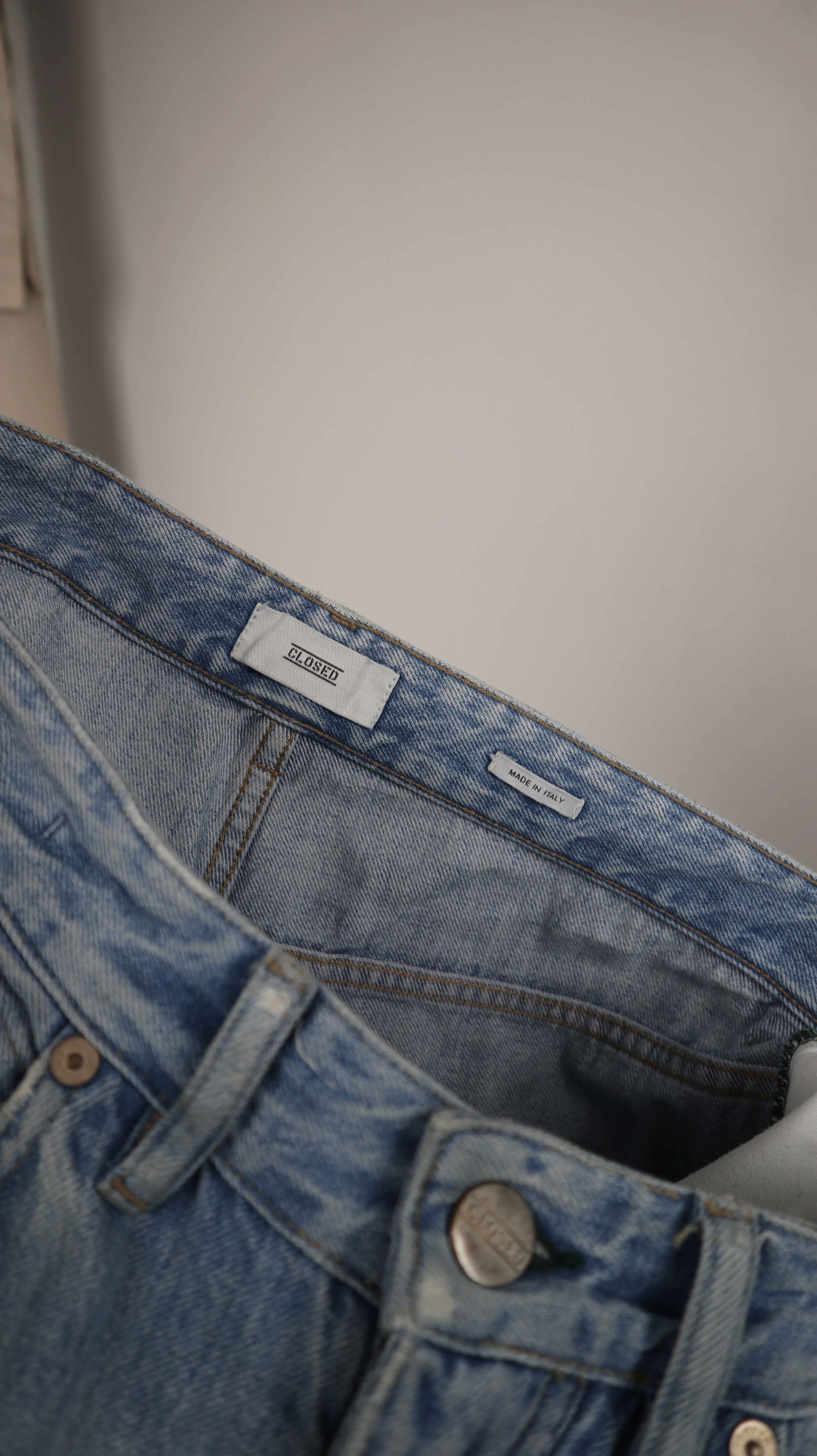 Blaue Jeans von Closed in Größe 30. Sie passt einer M. 41 cm Achselweite, 29 cm Schritthöhe und 75 cm Innenbeinlänge. Plus Versand