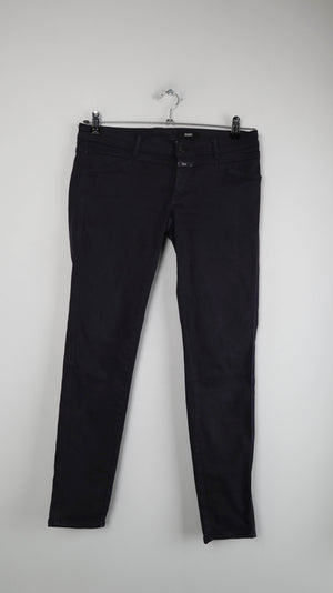 Dunkelblaue Hose von Closed in einer 40 L. Sie ist in 30 ausgeschildert. 43 cm Bundweite, 18 cm Schritthöhe und 75 cm Innenbeinlänge. Plus Versand
