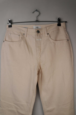 Beige, neuwertige Hose von Closed in einer ausgeschilderten 27. Sie fällt wie eine 40 L aus. 40 cm Bundweite, 26 cm Schritthöhe und 83 cm Innenbeinlänge. Plus Versand