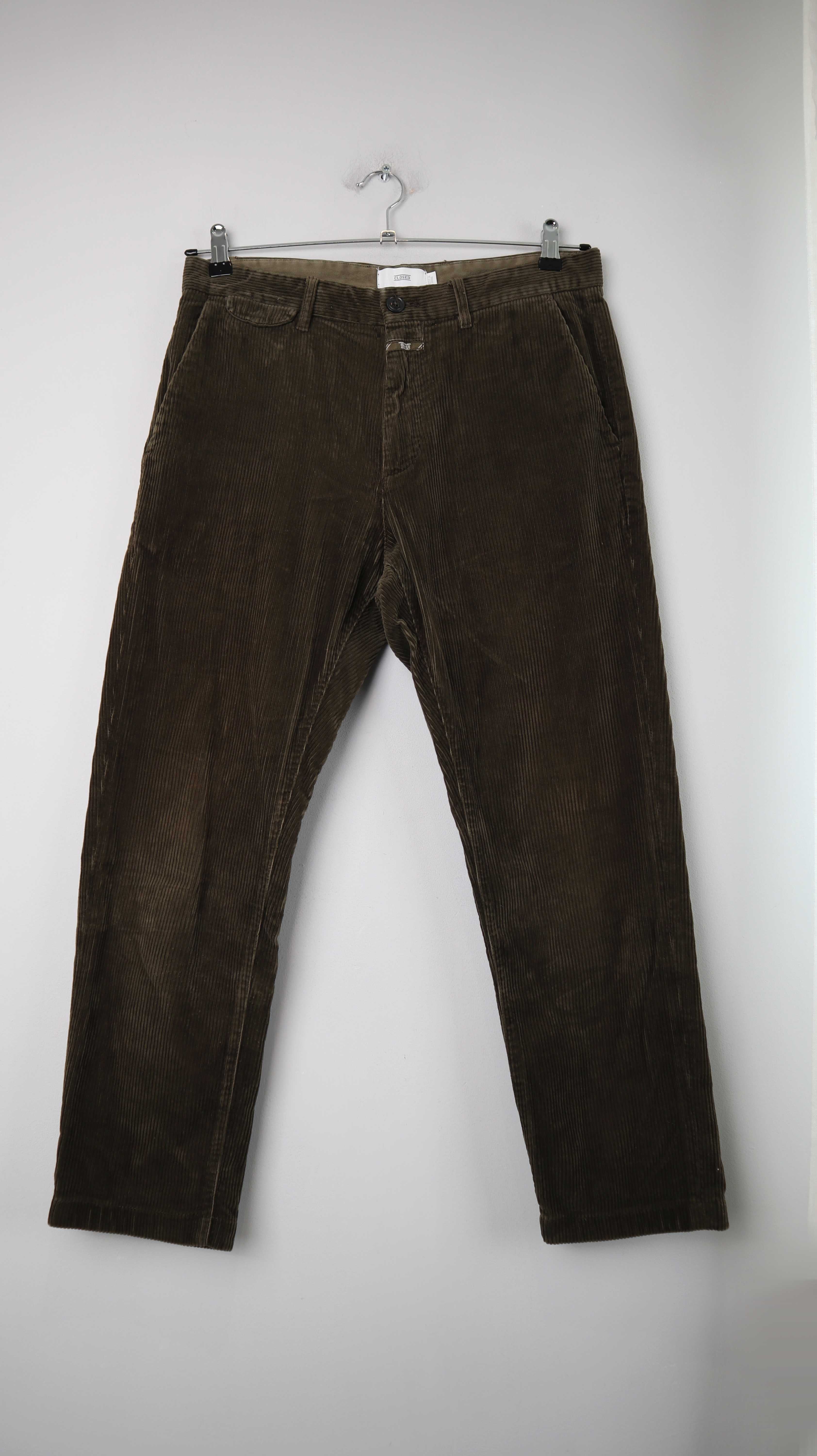 Grüne Cordhose von Closed in der Größe 31. Das Modell heißt Atelier Cropped. 41 cm Bundweite, 28 cm Schritthöhe und 62 cm Innenbeinlänge. Plus Versand