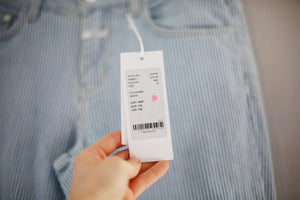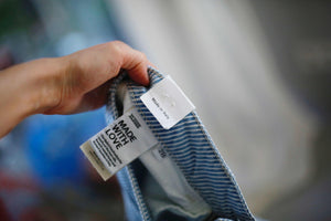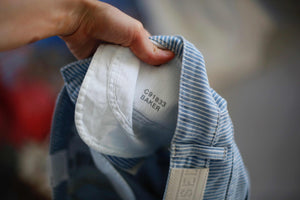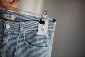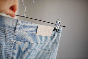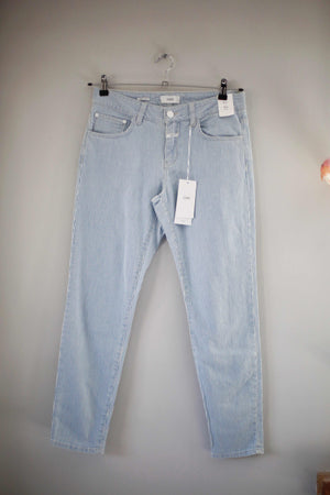 Neue blau weiß gestreifte Hose von Closed in 28. Es ist das Modell Baker in slim fit und mid waist. 40 cm Bundweite, 24 cm Schritthöhe und 70 cm Innenbeinlänge. Plus Versand