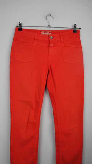 Rote Hose von Closed in einer 28. Sie sitzt mid waist und passt einer 36 S. 40 cm Bundweite, 21 cm Schritthöhe und 71 cm Innenbeinlänge. Plus Versand