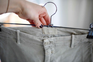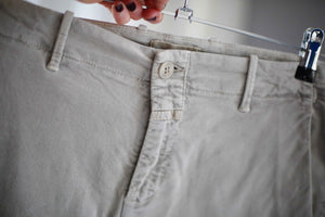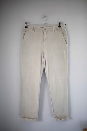 Beige Samthose von Closed in 28, das Modell heisst Joe. 40 cm Bundweite, 27 cm Schritthöhe und 66 cm Innenbeinlänge. Plus Versand