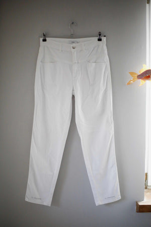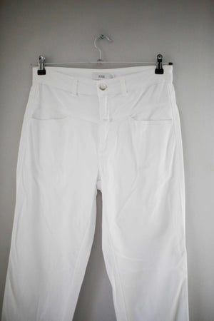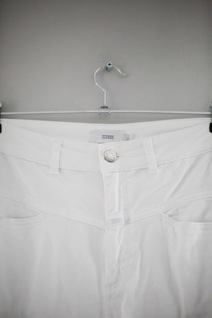 Weiße Pedal Pusher Hose von Closed in einer italienischen 44. 40 cm Bundweite, 29 cm Schritthöhe und 72 cm Innenbeinlänge. Sie passt einer 38 M wunderbar. Plus Versand