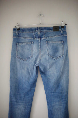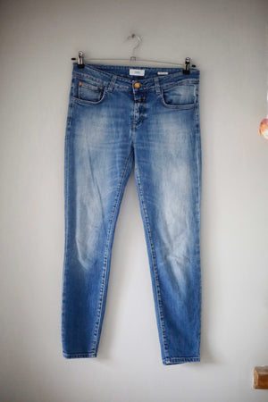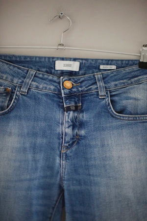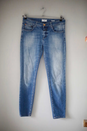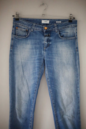 Blaue Jeans von Closed in Größe 29. Das Modell ist Baker. 40 cm Bundweite, 22 cm Schritthöhe und 72 cm Innenbeinlänge. Plus Versand