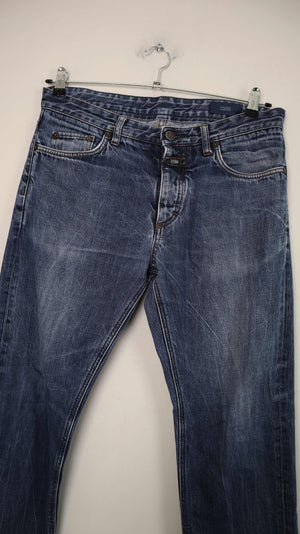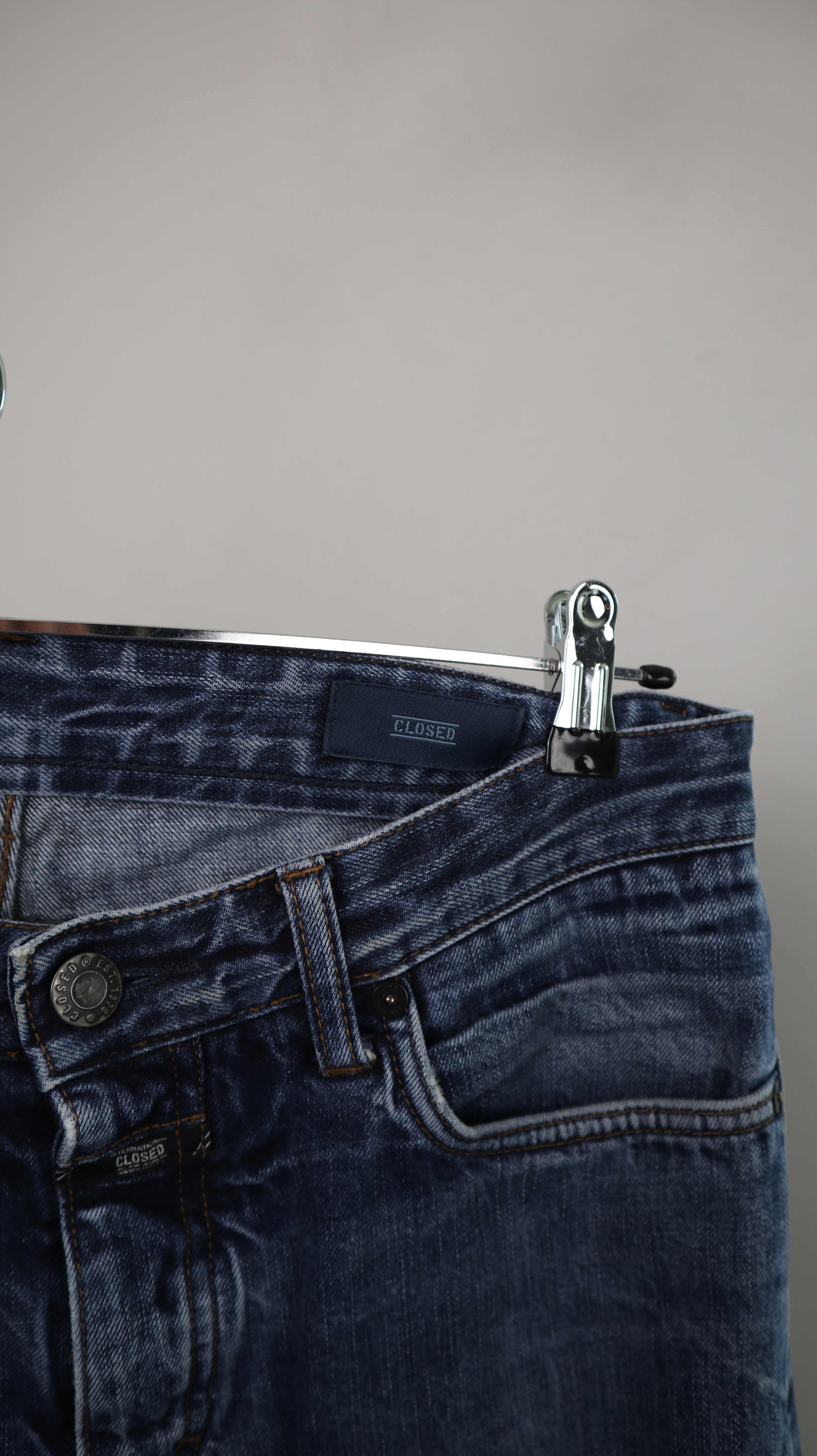 Dunkelblaue Jeans von Closed in der Größe 30. Es ist das Modell Classic. 43 cm Bundweite, 25 cm Schritthöhe und 76 cm Innenbeinlänge. Plus Versand