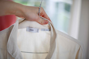Helles Kleid mit Leinenanteil von Closed in Creme. Es ist in XS ausgeschildert und fällt größer aus. 55 cm Achselweite und 105 cm Länge. Plus Versand