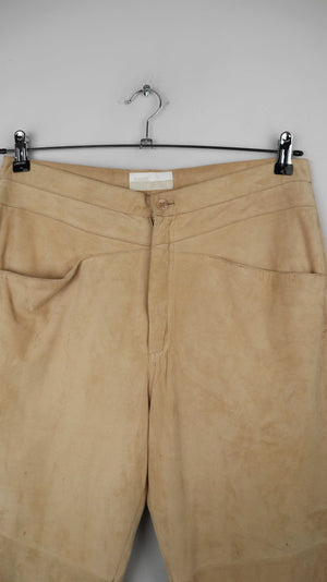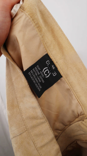 Beige Wildlederhose von Closed in einer italienischen 48. Sie passt einer 40 L. 41 cm Bundweite, 30 cm Schritthöhe und 63 cm Innenbeinlänge. Plus Versand