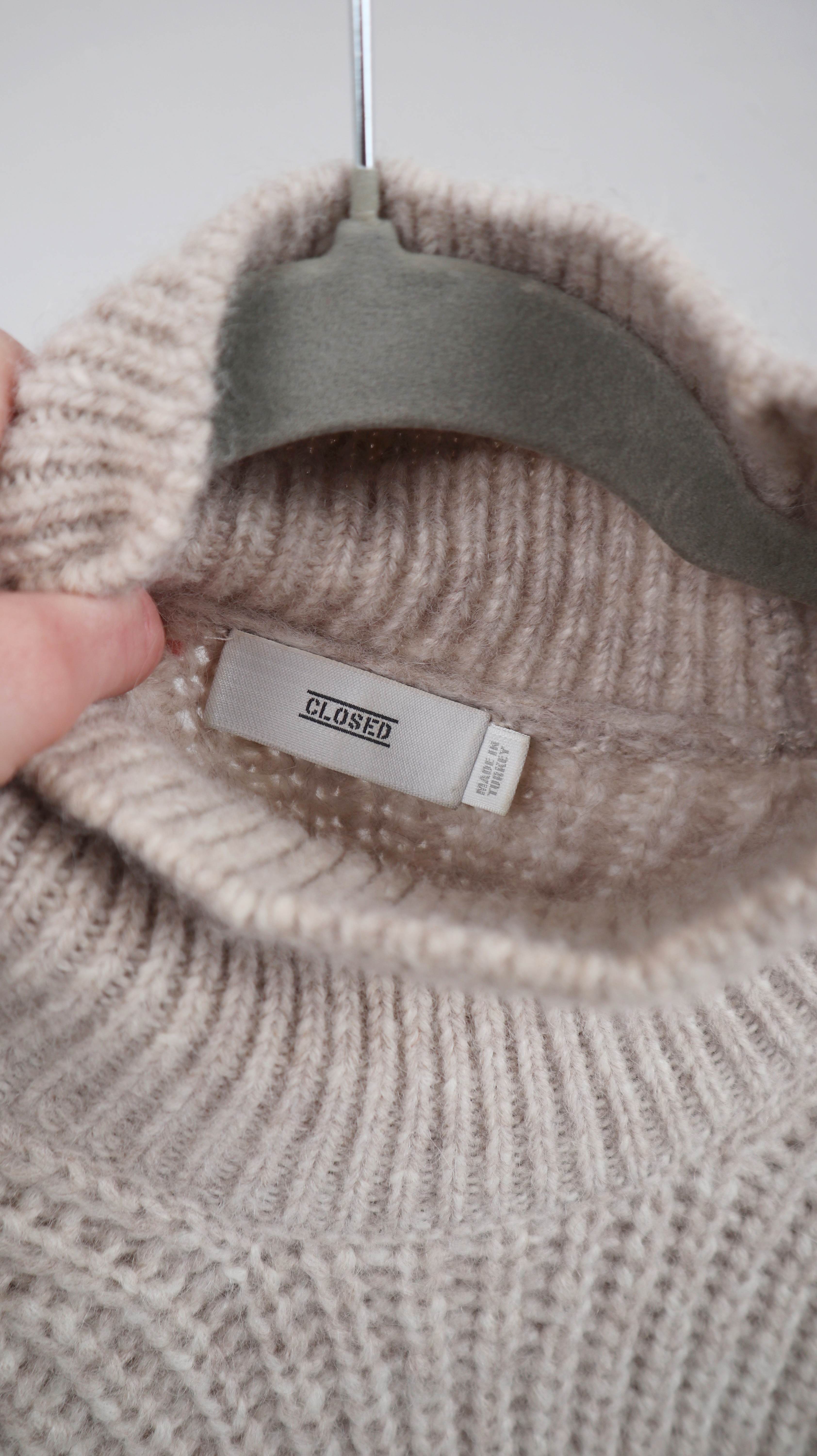Beiger Strickpullover von Closed in einer 38 M. Er ist mit Alpaka und Nylon. 64 cm Achselweite und 59 cm Länge. Plus Versand