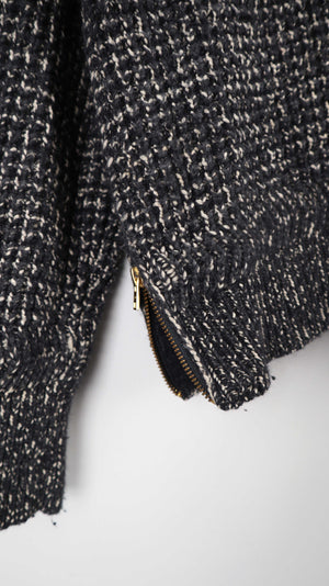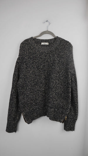 Grauer Wollpullover von Closed in S. Seitlich hat er Reißverschlüsse. 57 cm Achselweite und 57 cm Länge. Plus Versand