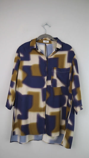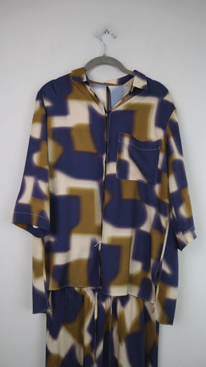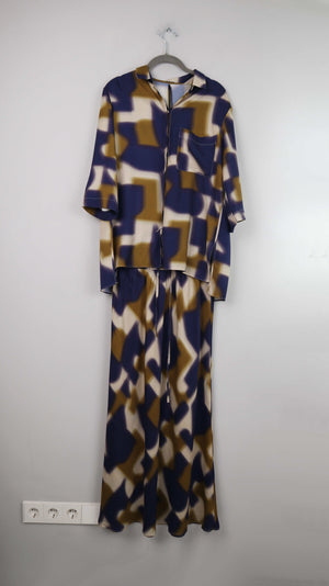 Closed Set Anzug Bluse Rock Blau Khaki geometrisch 38 M