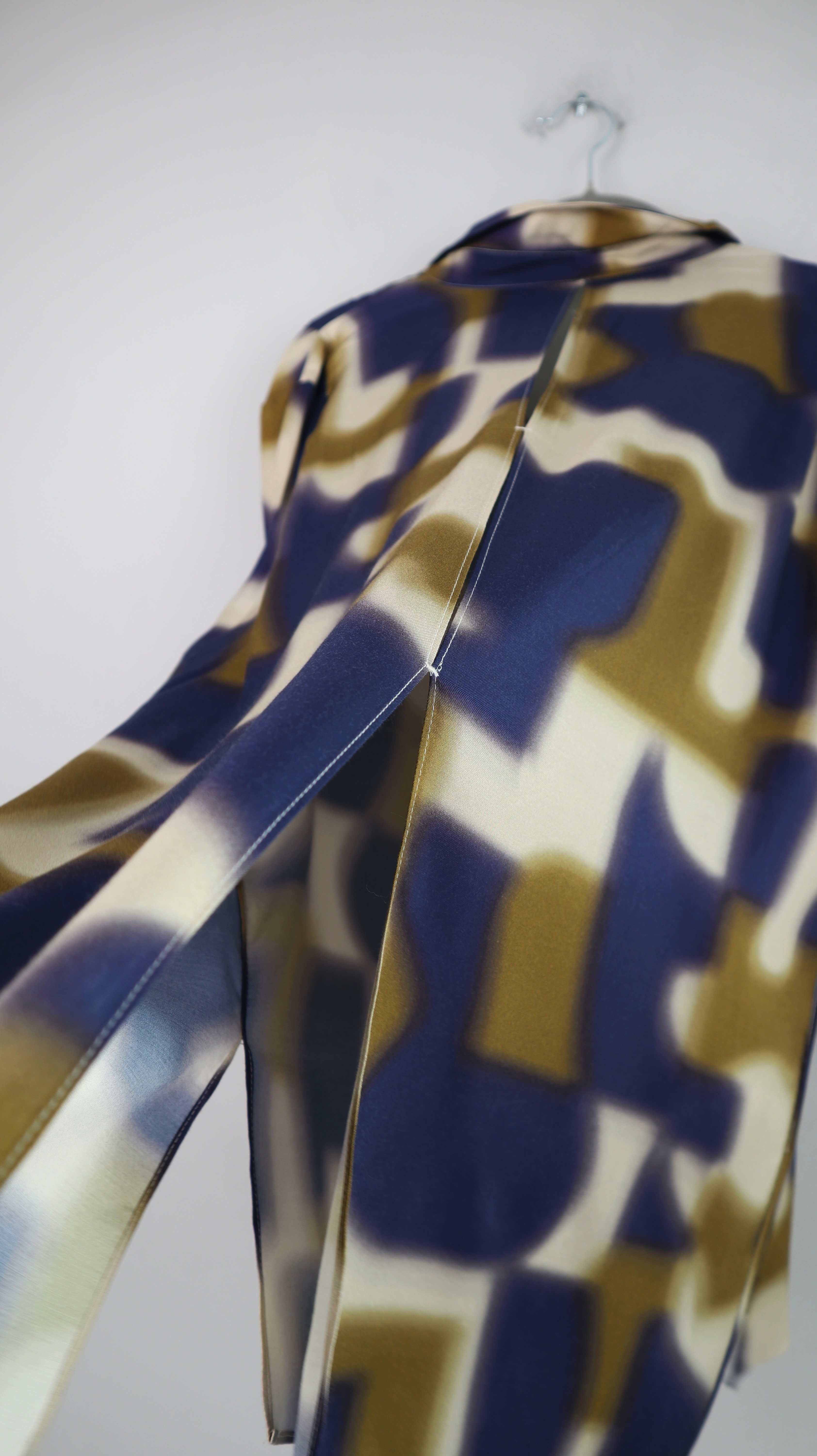 Set von Closed mit einem Rock und einer Bluse mit Muster drauf. Hinten hat die Bluse besondere Details und ist halb offen durch Schlitze. Das Set passt einer 38 M. Plus Versand