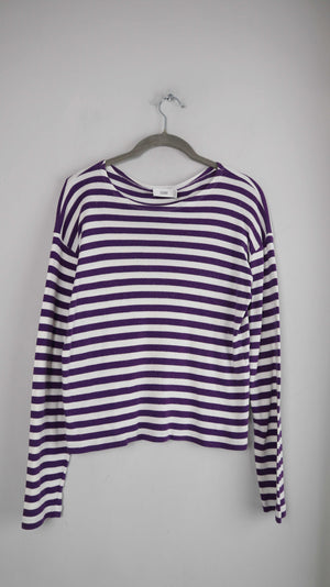 Longsleeve von Closed in lila weiß. Es passt einer 38 M. 50 cm Achselweite und 50 cm Länge. Plus Versand