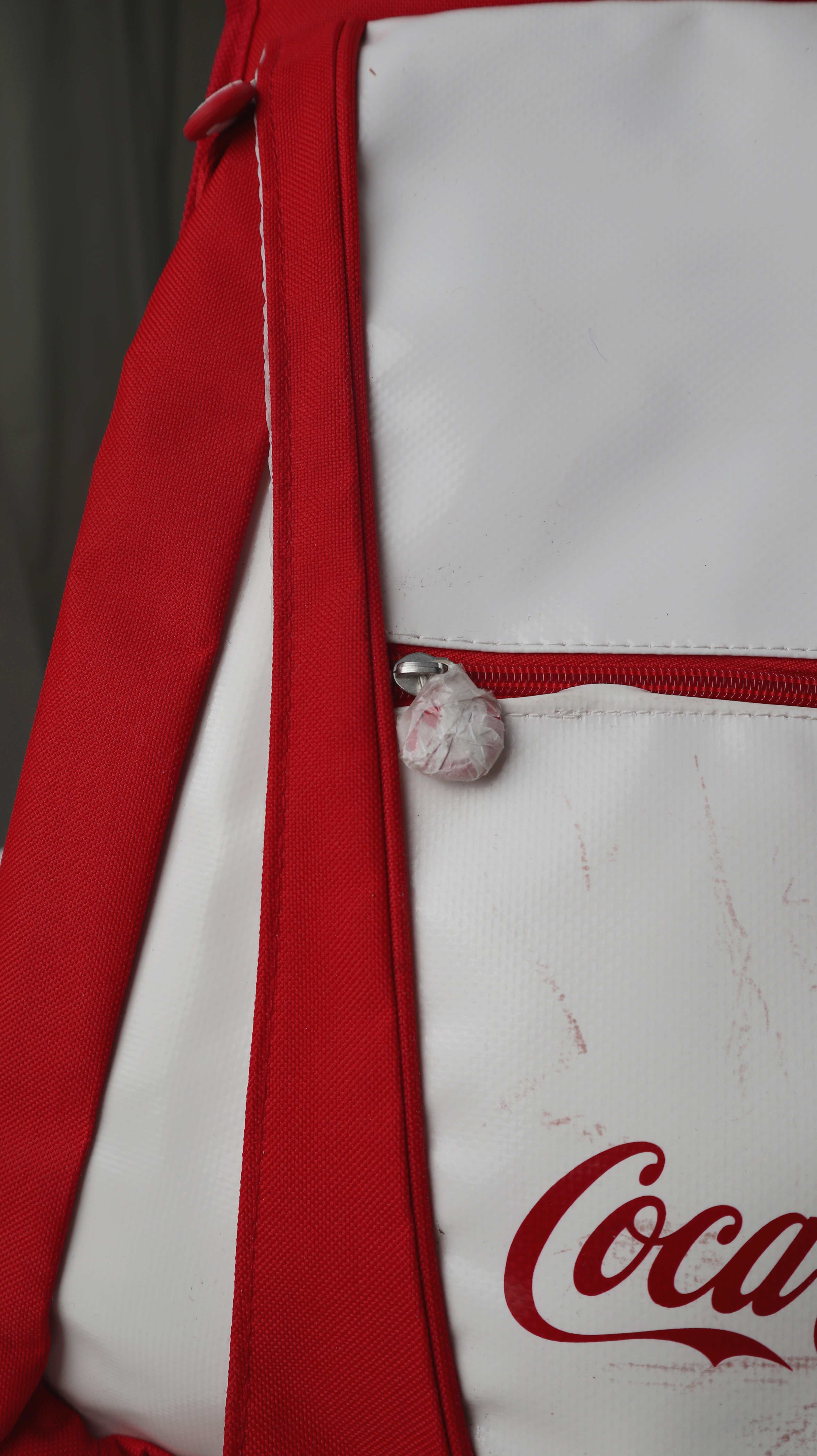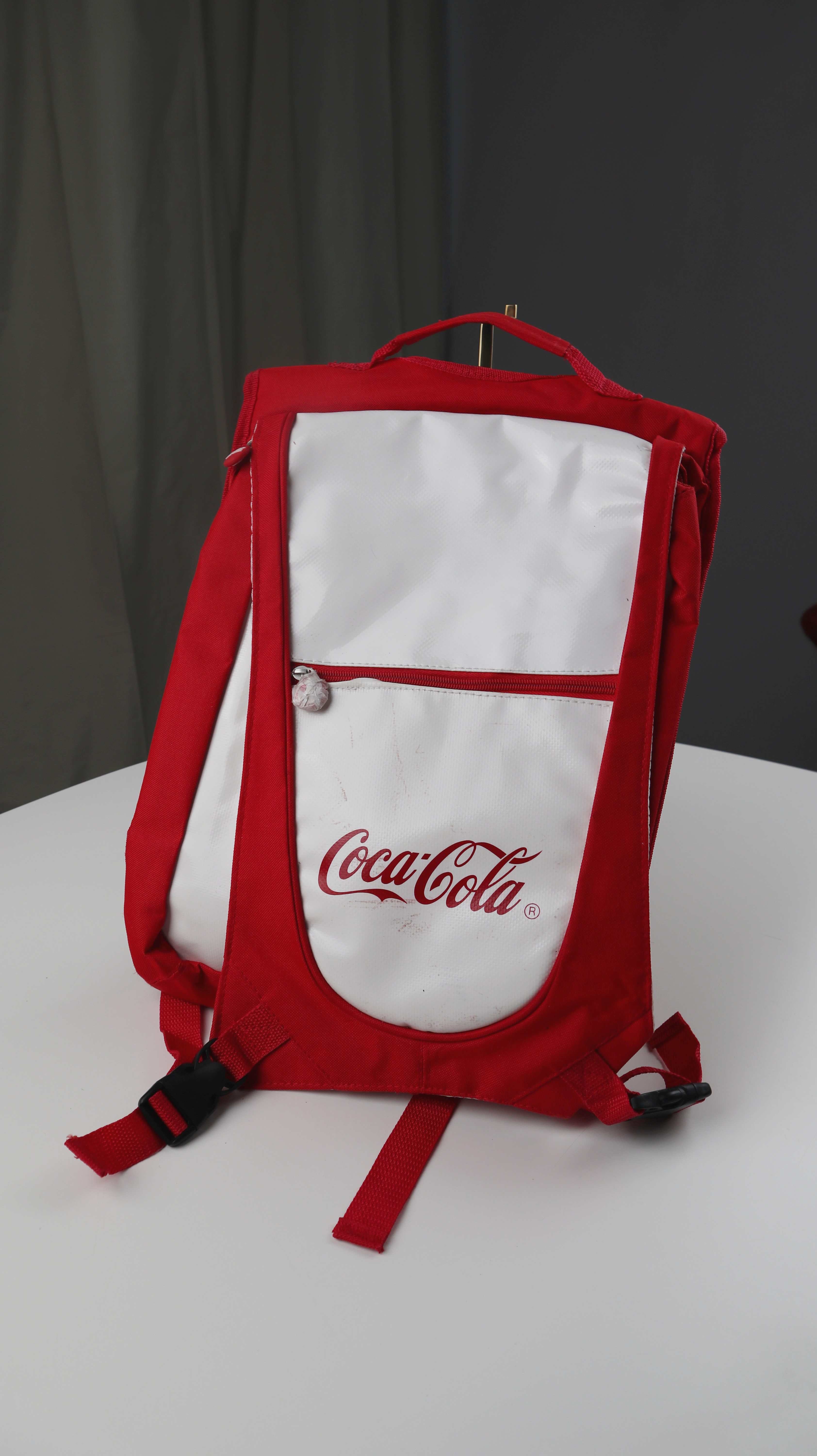 Werberucksack von Coca Cola in rot weiß. Plus Versand