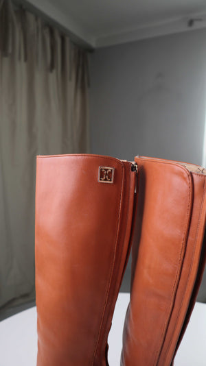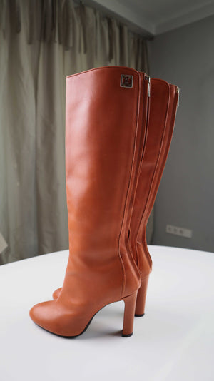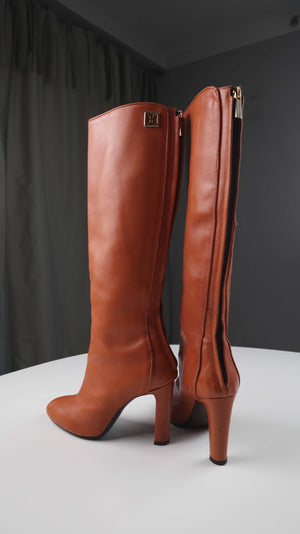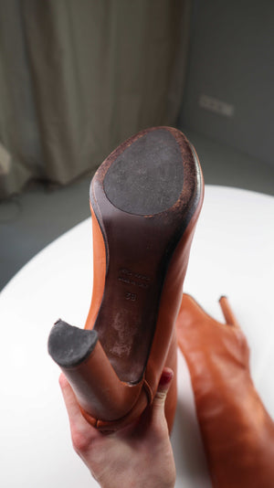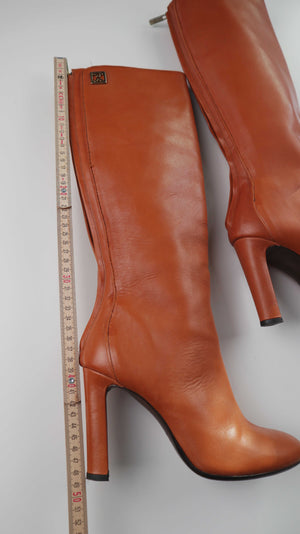 Coccinelle Stiefel braun Lederstiefel alng 38 Absatzstiefel Cognac