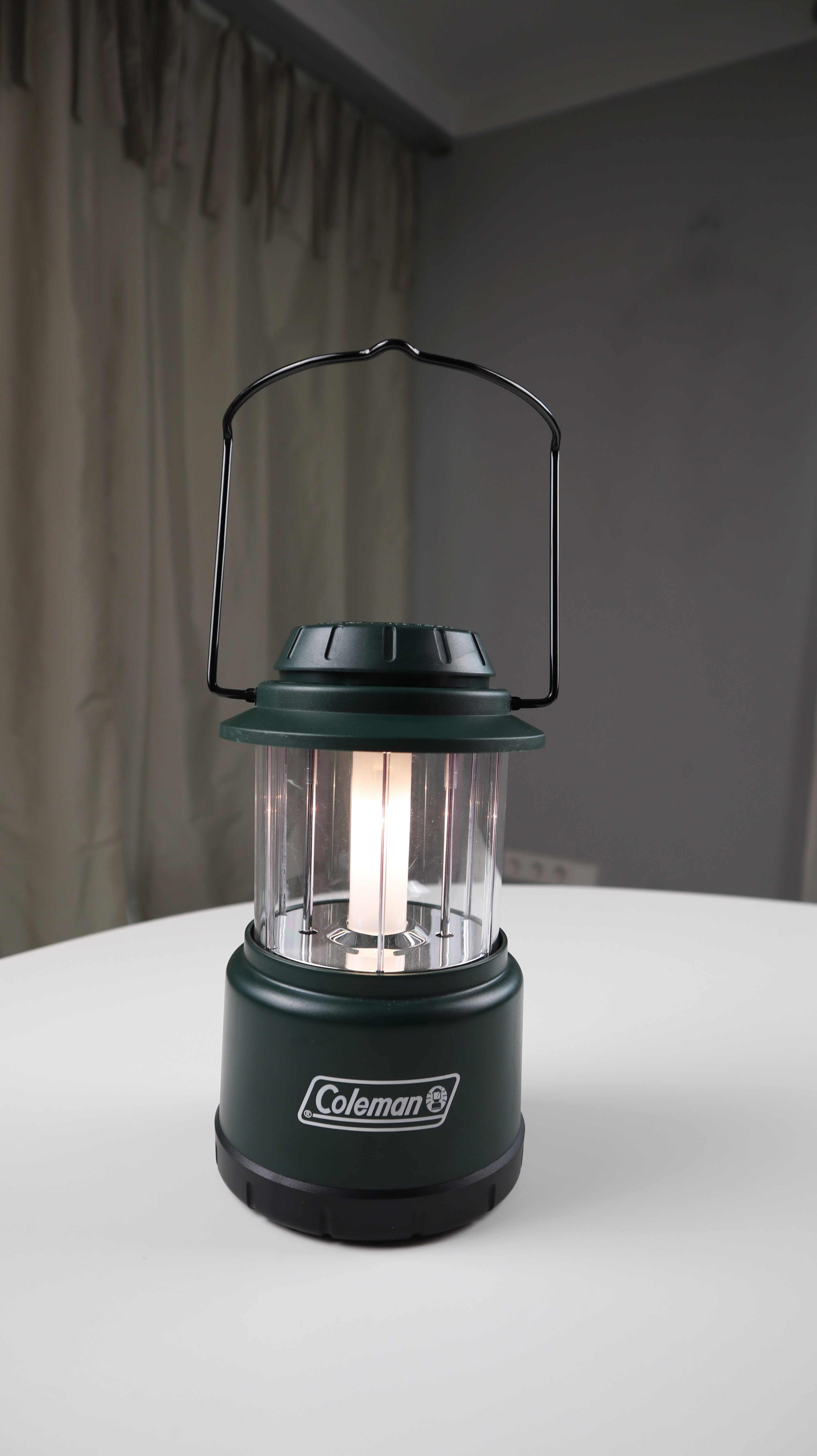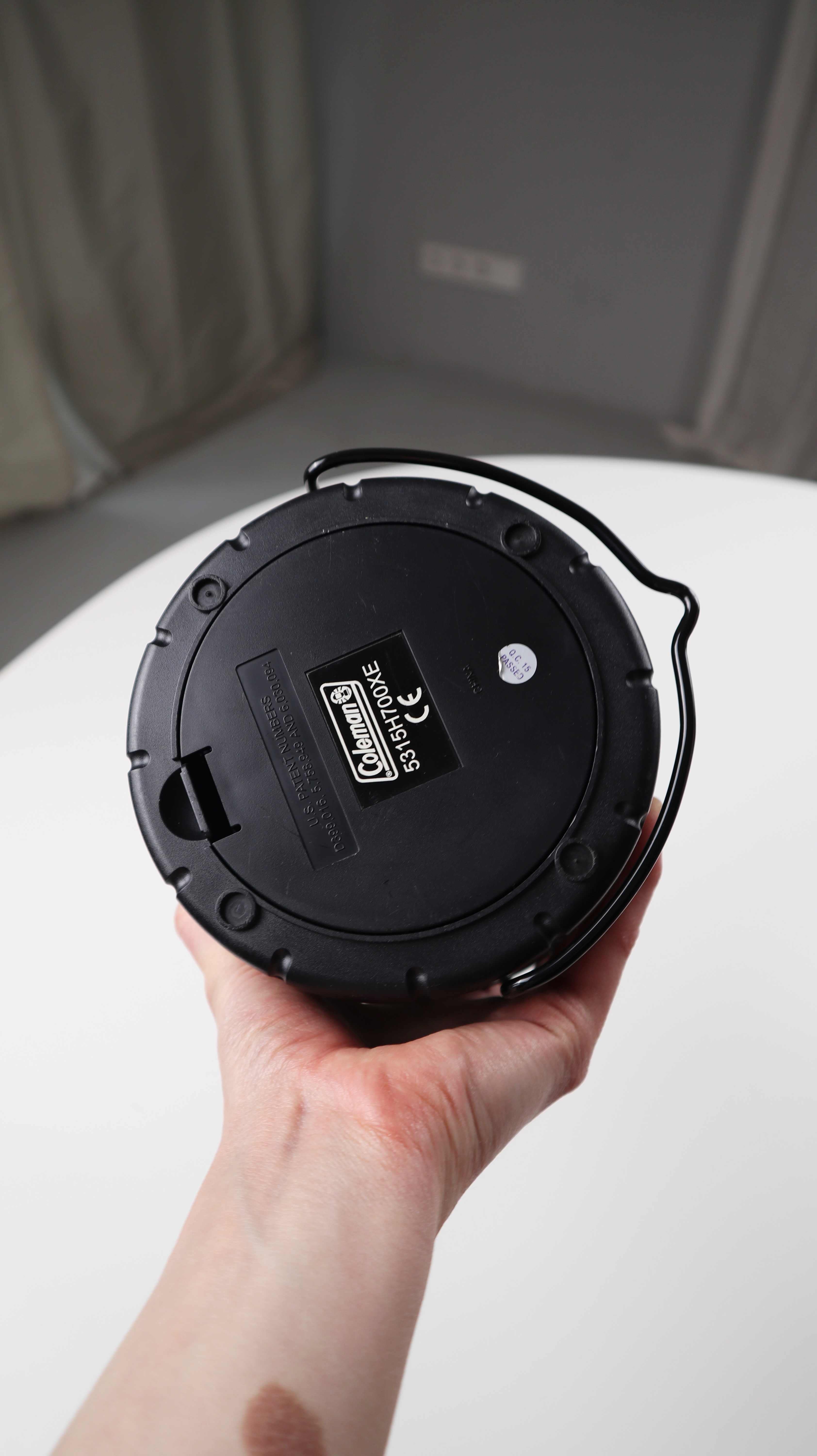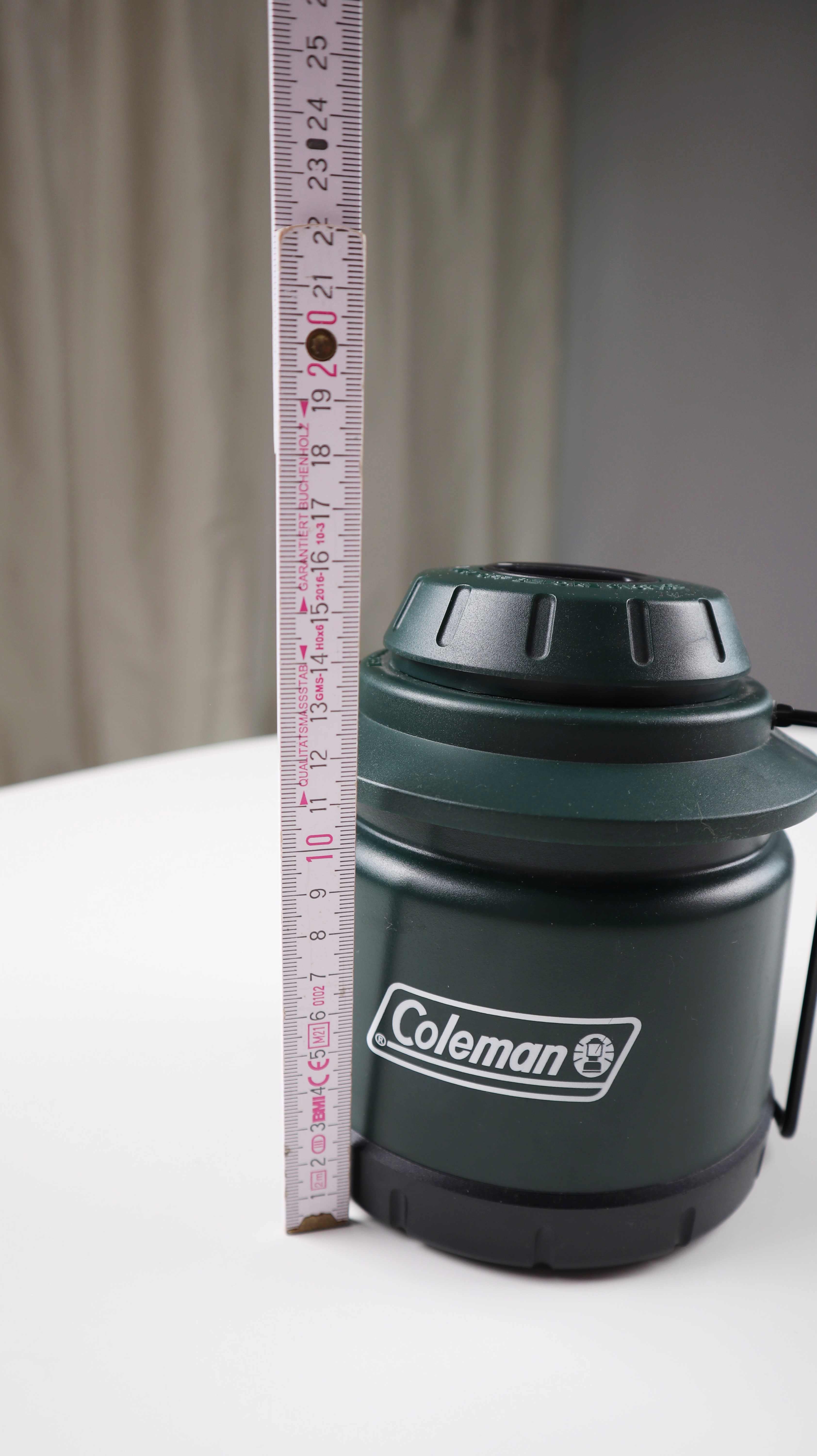 Tragbare Lampe mit Batterien von Coleman. Man kann sie oben herausziehen und hat einen Henkel zum Tragen. Plus Versand