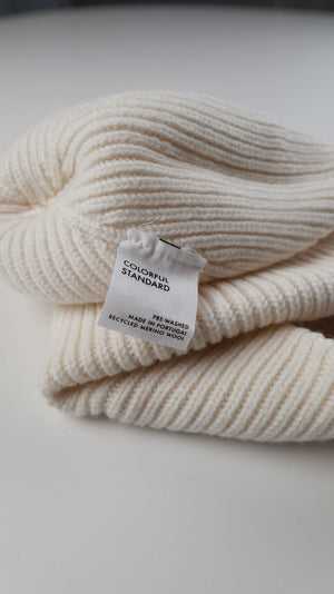 Neue Beanie von Colorful Standard in Creme aus Merinowolle. Plus Versand