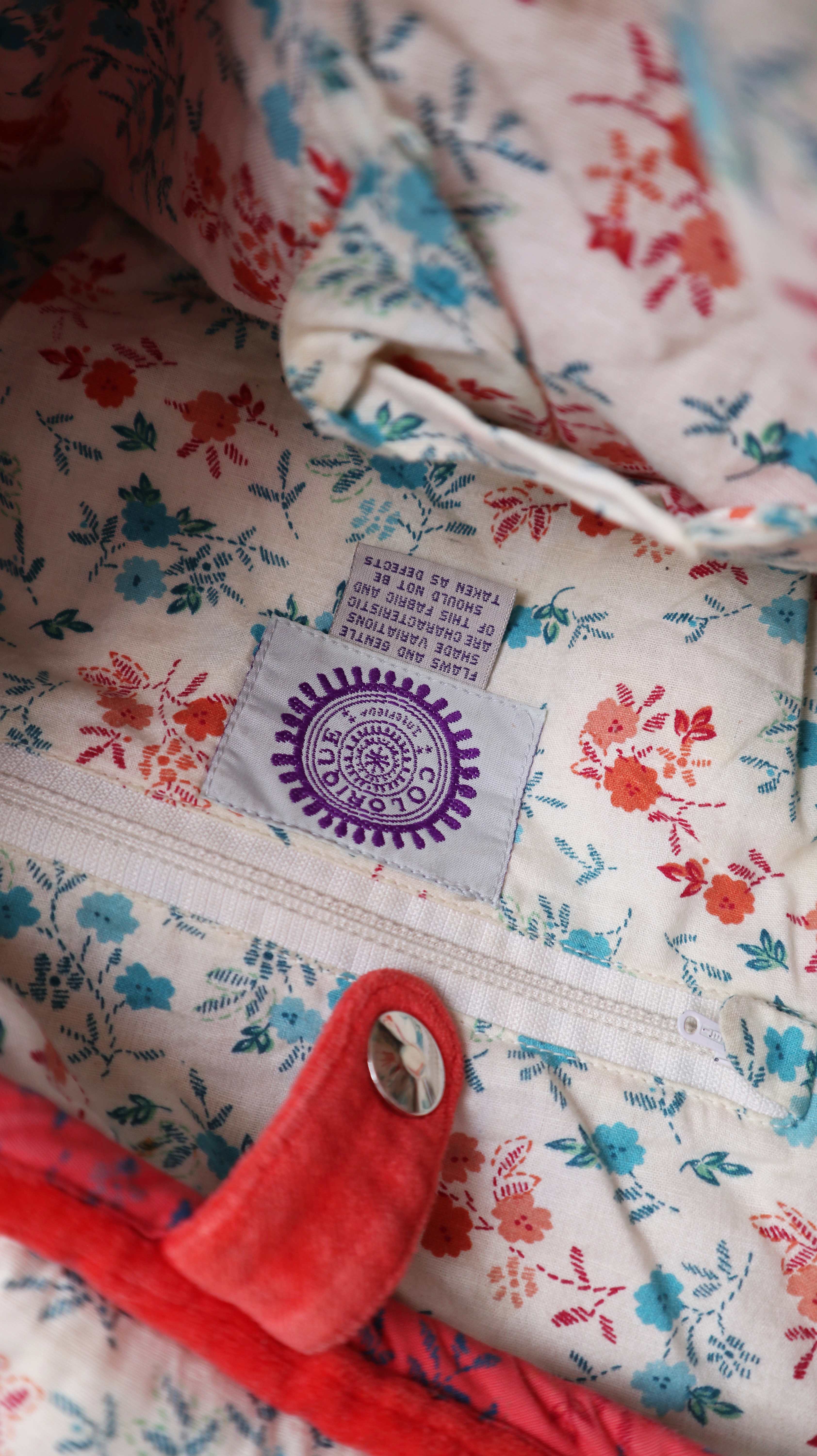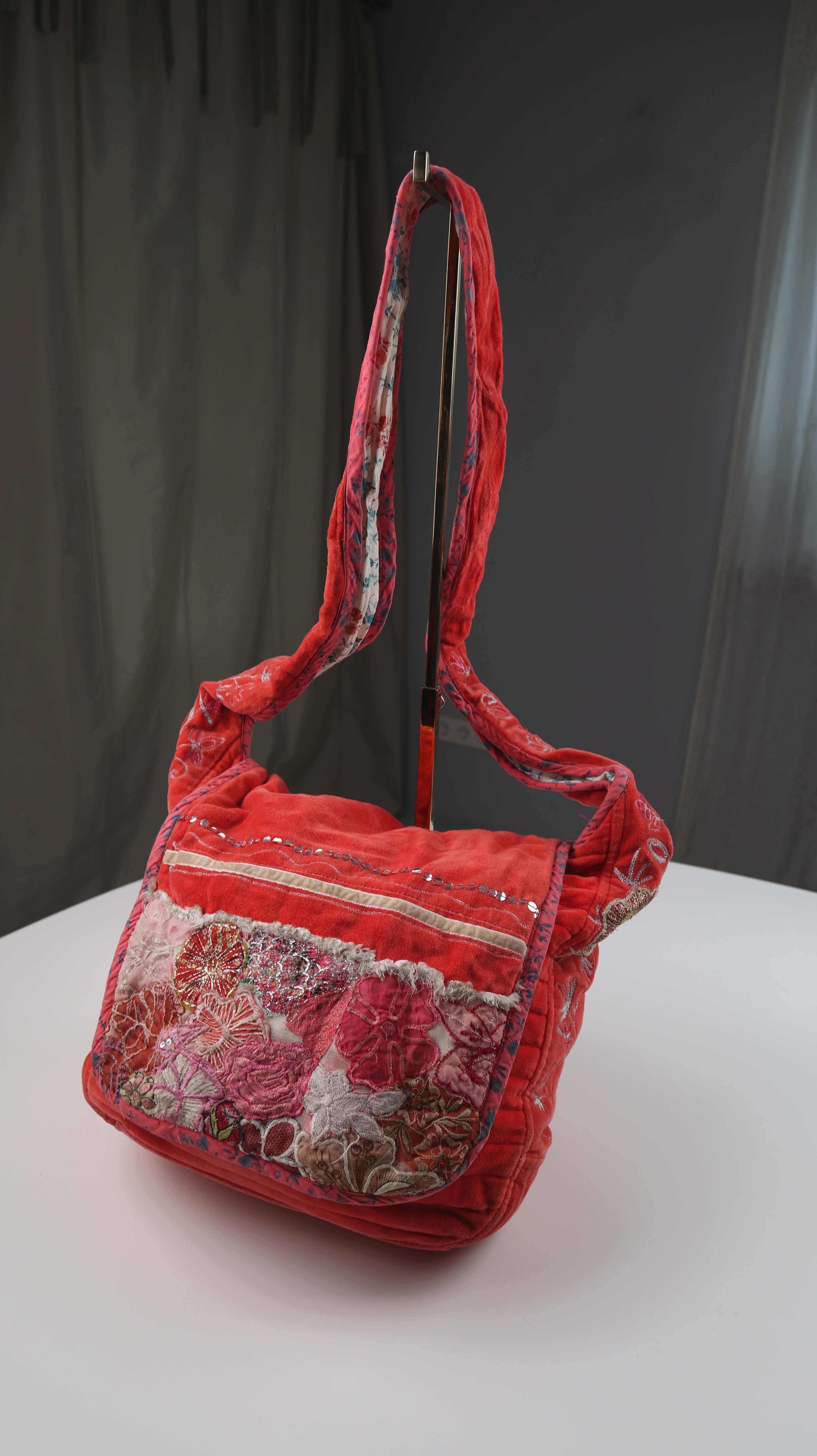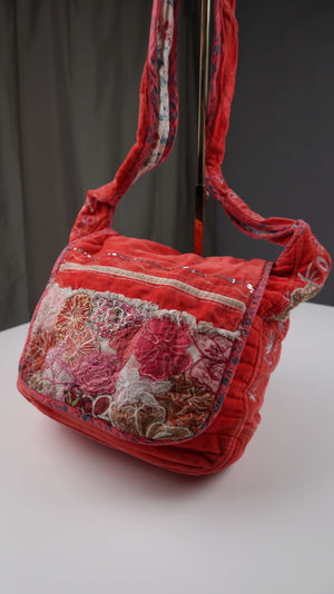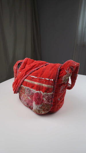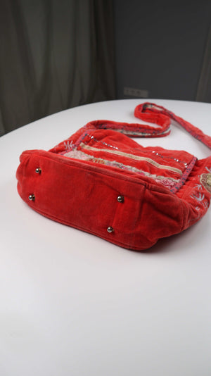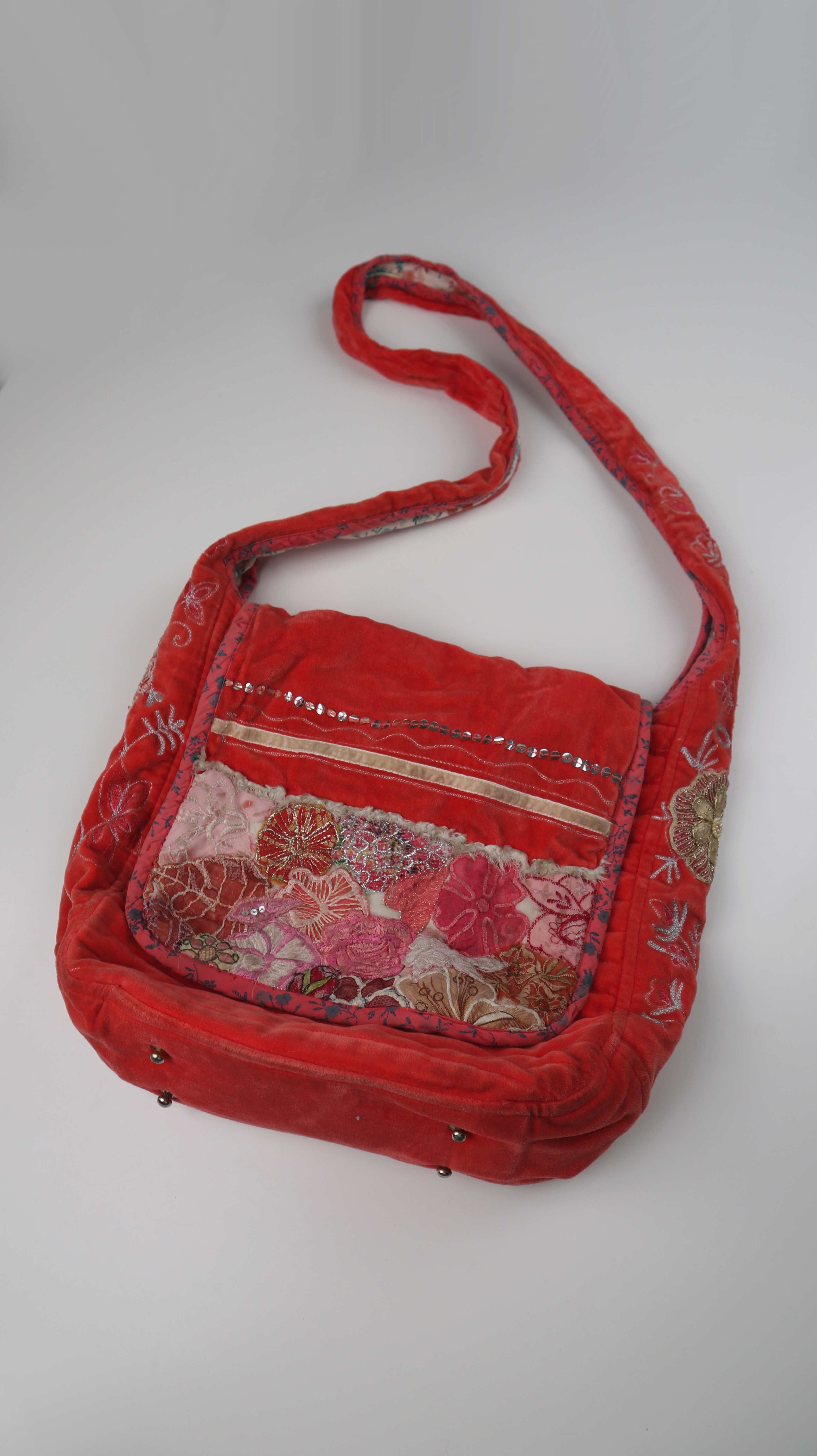 Sehr schöne rote Samttasche im Bohemian-Style von Colorique. Plus Versand