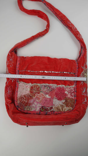 Colorique Tasche Samttasche rot Hippie Paisley Umhängetasche Velvet