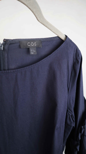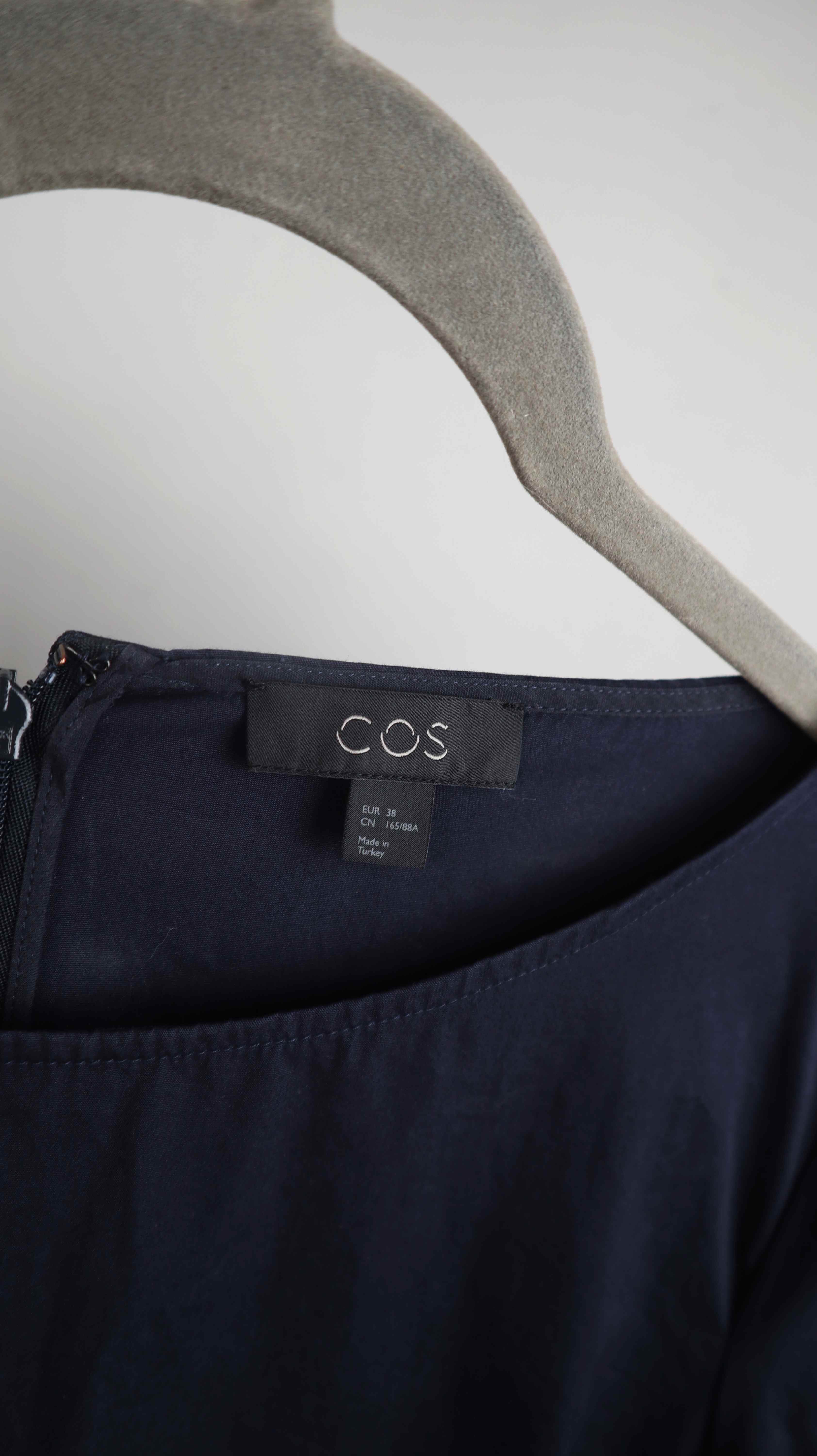 Dunkelblaues Midikleid von COS in einer 38 M. 47 cm Achselweite und 89 cm Länge. Plus Versand
