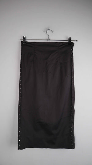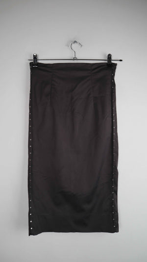 Dunkelgrauer Rock von COS in 38 M. Seitlich hat er Nieten. 37 cm Bundweite, 71 cm Länge. Plus Versand
