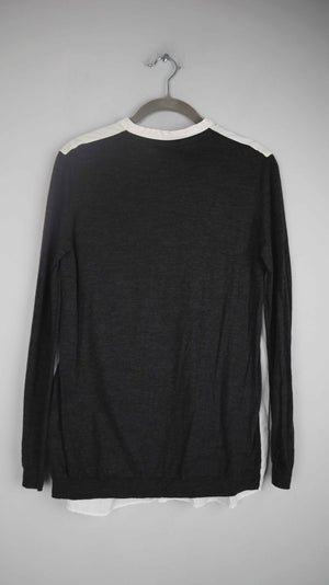 COS Shirt Longsleeve grau weiß 36 S Wolle Oberteil Pullover Bluse