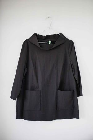 Schwarze Bluse in 40 L von COS mit zwei Taschen. Sie war in der Reinigung. 52 cm Achselweite und 66 cm Länge. Plus Versand