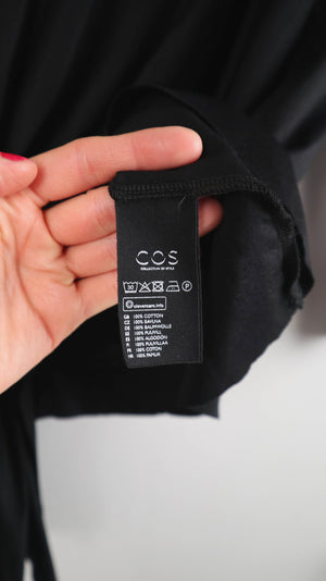 Schwarzes Shirt von COS in 38 M. Es ist links leicht gerafft. 46 cm Achselweite und 71 cm Länge. Plus Versand
