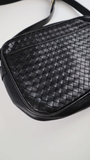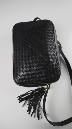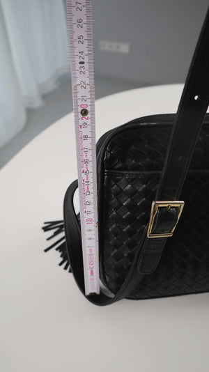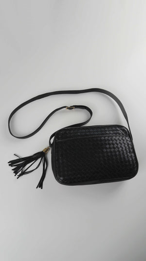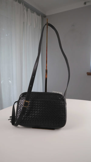 Cosci Umhängetasche schwarz Ledertasche geflochten made in italy