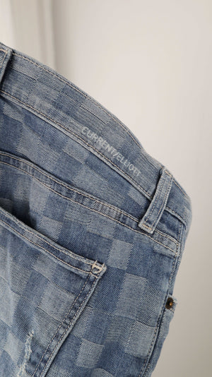 Current Elliot Hose Jeans 38 M kariert blau denim straight fit