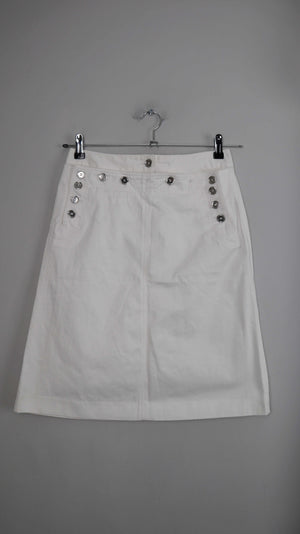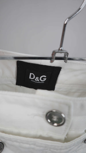 Sommerrock von D&G in weiß. Ein paar der Knöpfe fehlen leider. 37 cm Bundweite und 60 cm Länge. Plus Versand