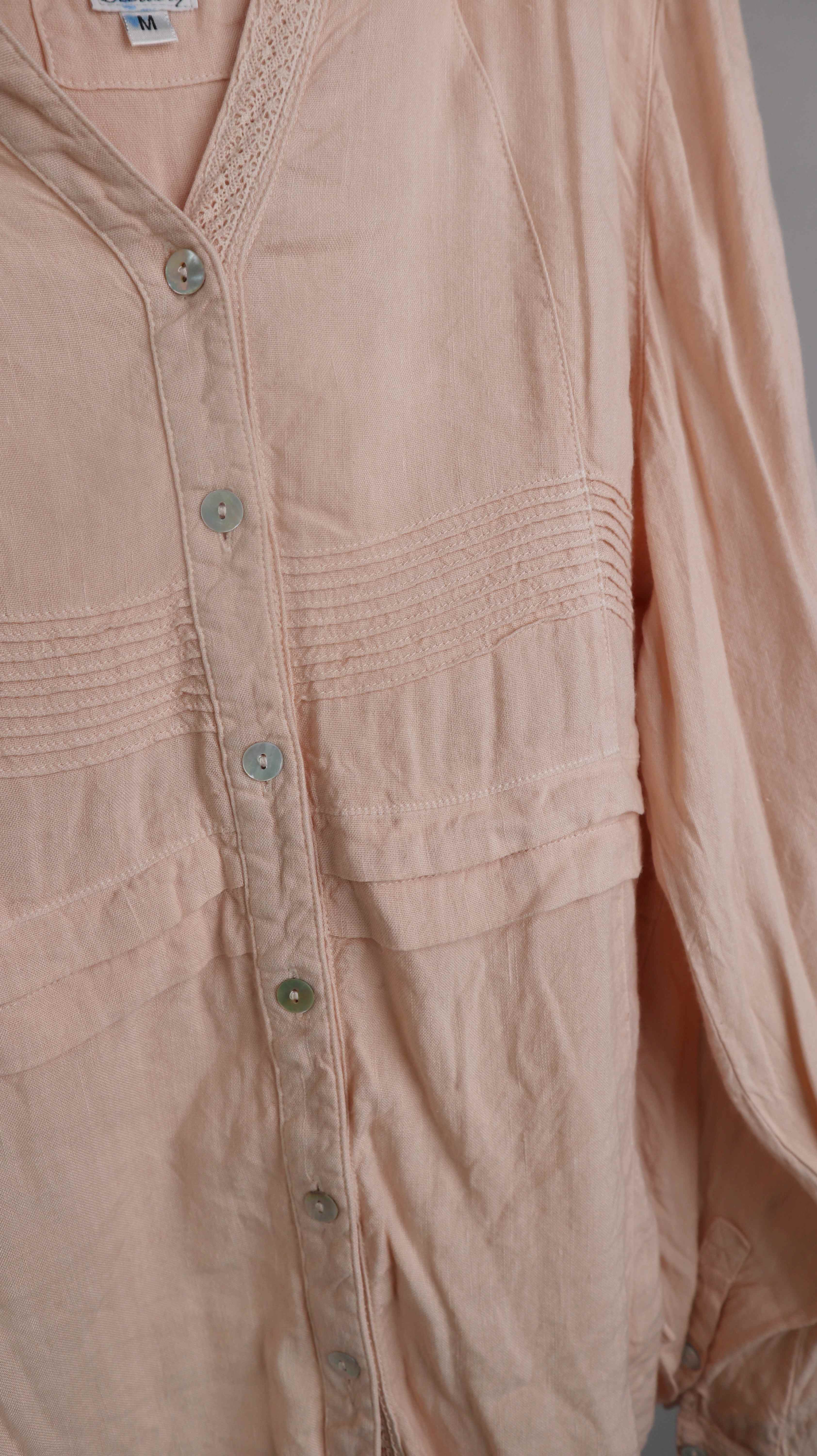 Altrosa Bluse in einer 38 M aus 55 Prozent Leinen. 50 cm Achselweite und 63 cm Länge. Plus Versand